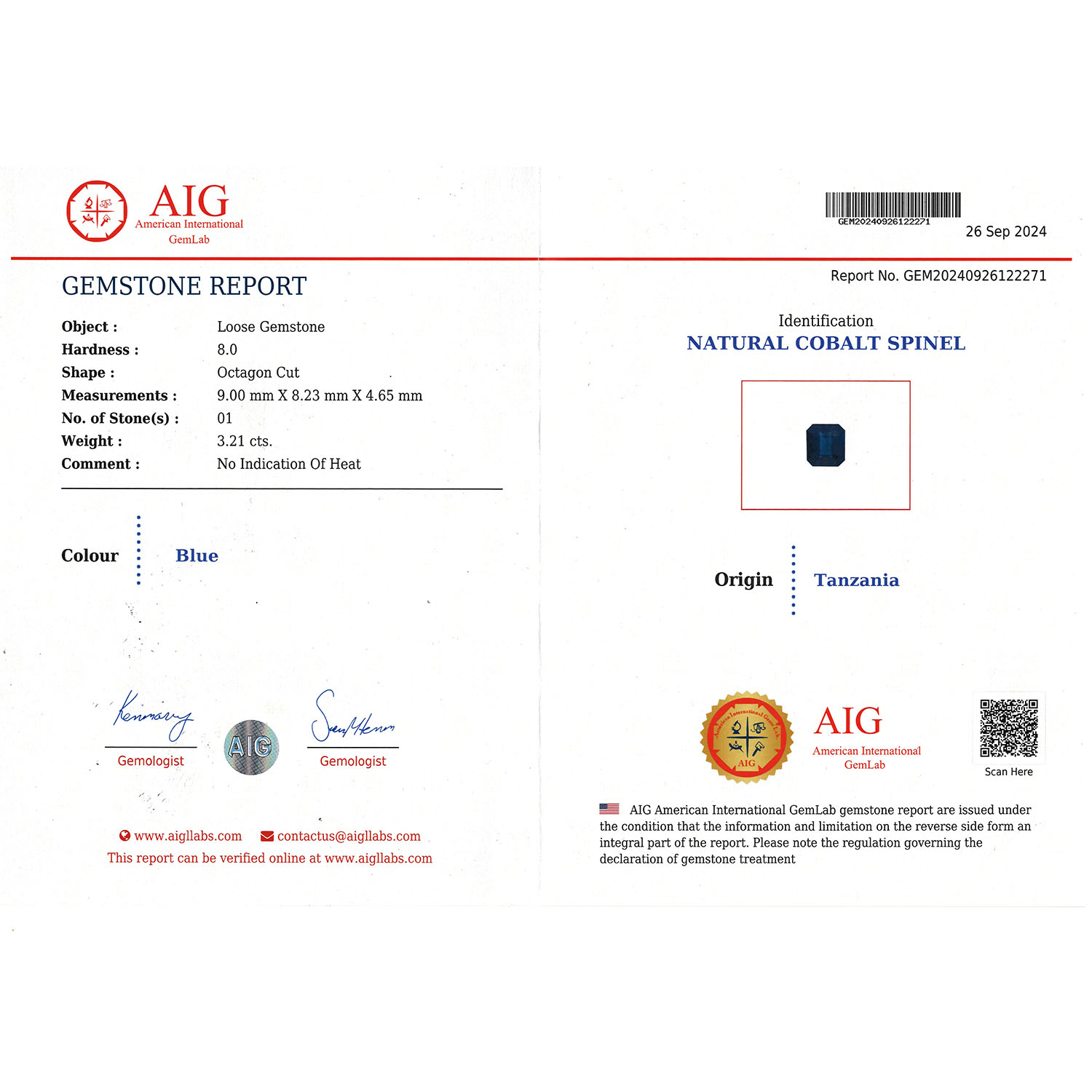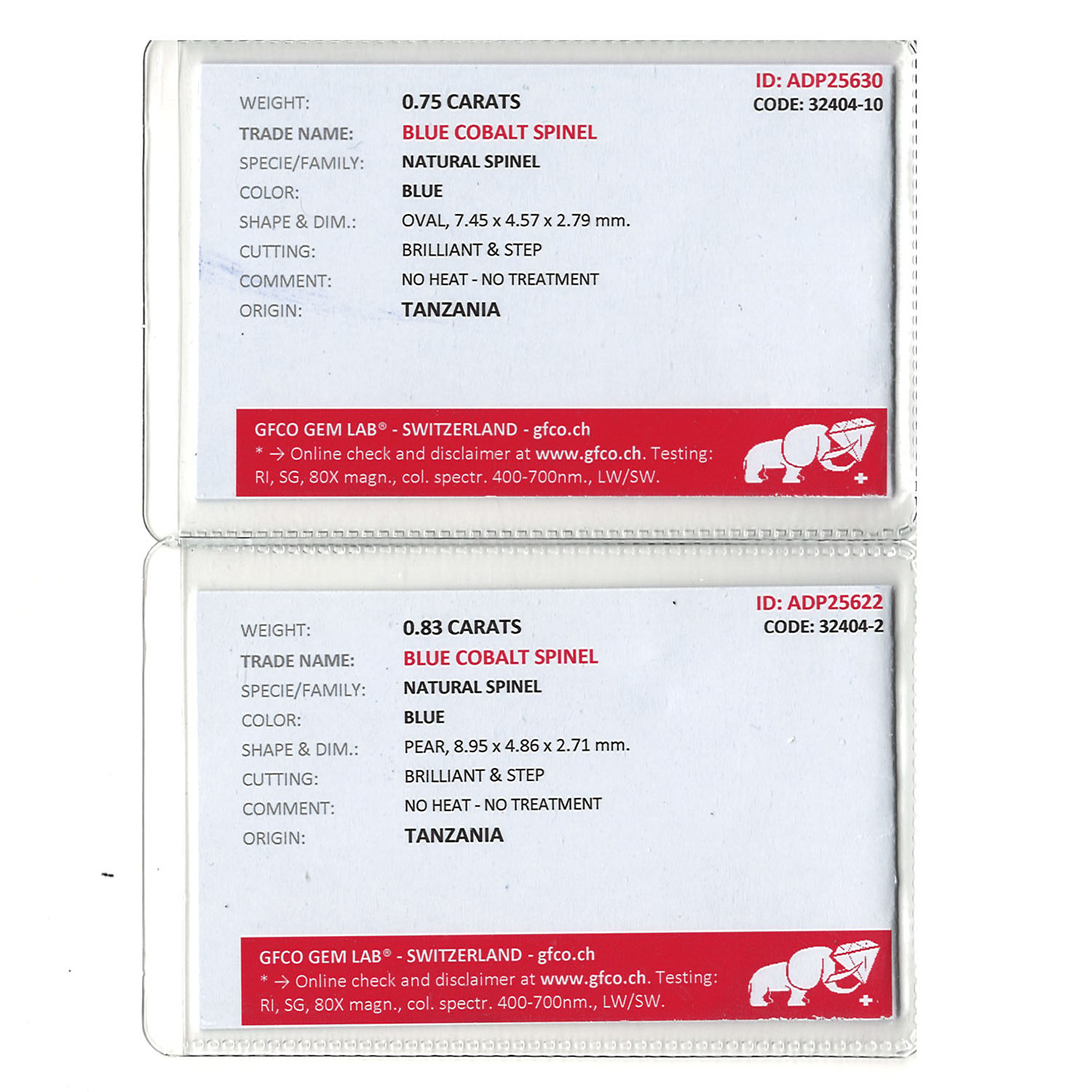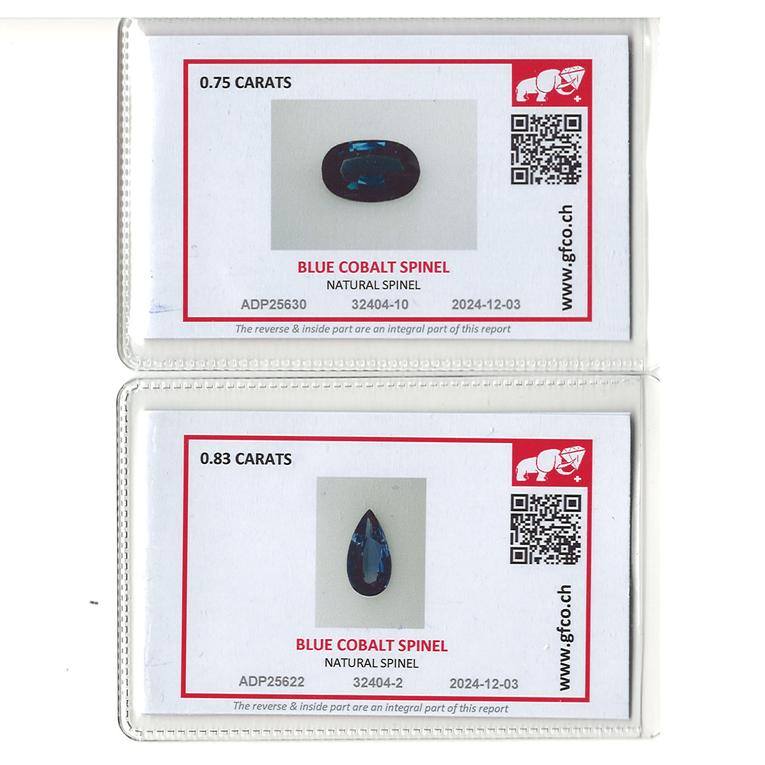 von zus. ca. 4,79 ct, in violettblauen bis blauen Farbtönen, davon 1 x 0,75 ct, oval, ca. 7,45 x 4,57 x 2,79 mm, 1 x 0,83 ct, Tropfen, ca. 8,95 x 4,86 x 2,71 mm, 1 x 3,21 ct, Smaragdschliff, ca. 9,00 x 8,23 x 4,65 mm, mit 2 x GFCO Edelsteinkurzbericht (12/2024) und 1 x AIG Edelsteinbefundbericht (09/2024), guter Schliff und Politur. Laut Meinung der Eppli Experten sollten diese Spinelle aufgrund ihrer Farbe nicht als 'Kobalt-Spinelle' bezeichnet werden. Alle Steine ohne detaillierte gemmologische Prüfung!