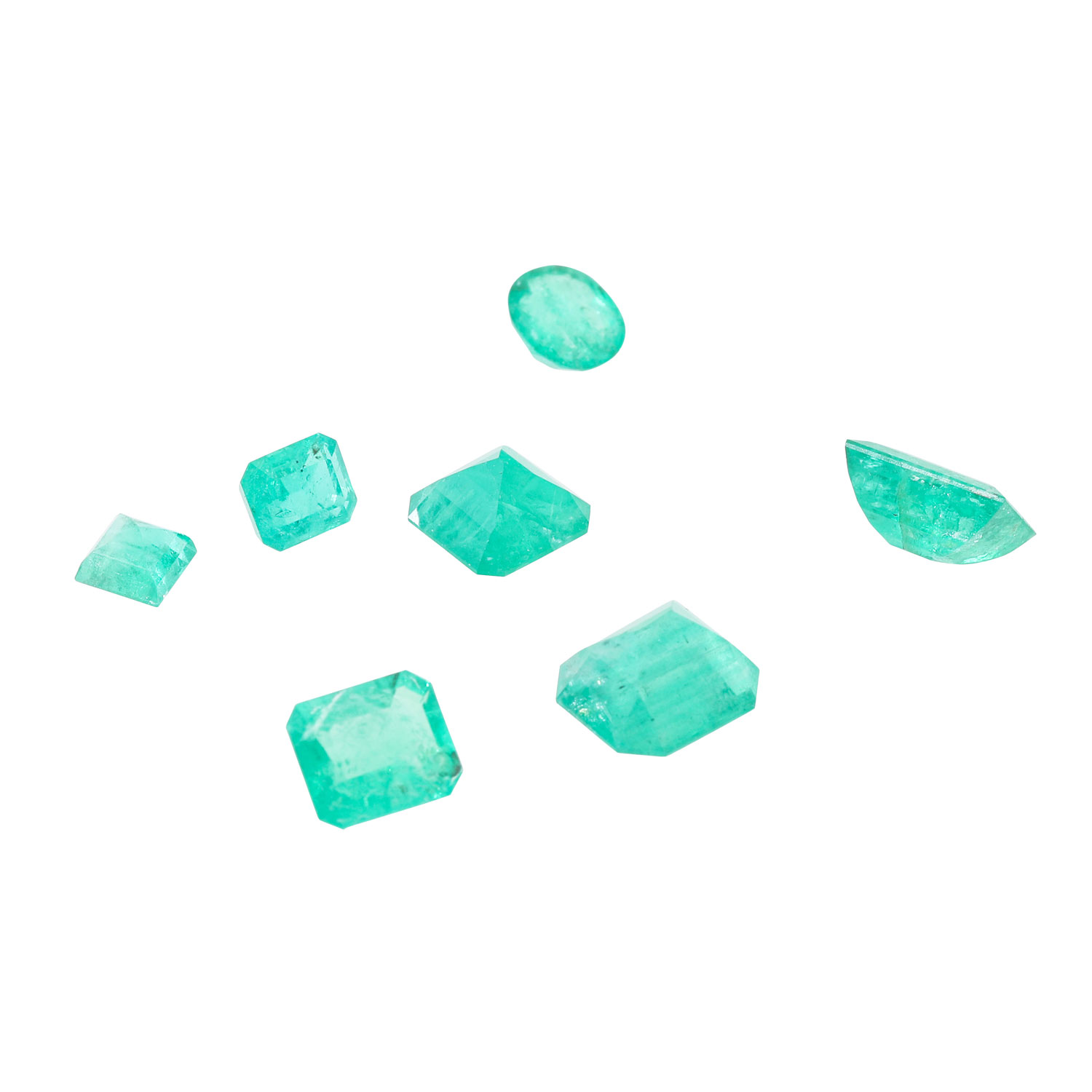 Konvolut von 7 fac. Smaragden von zus. ca. 6,4 ct,