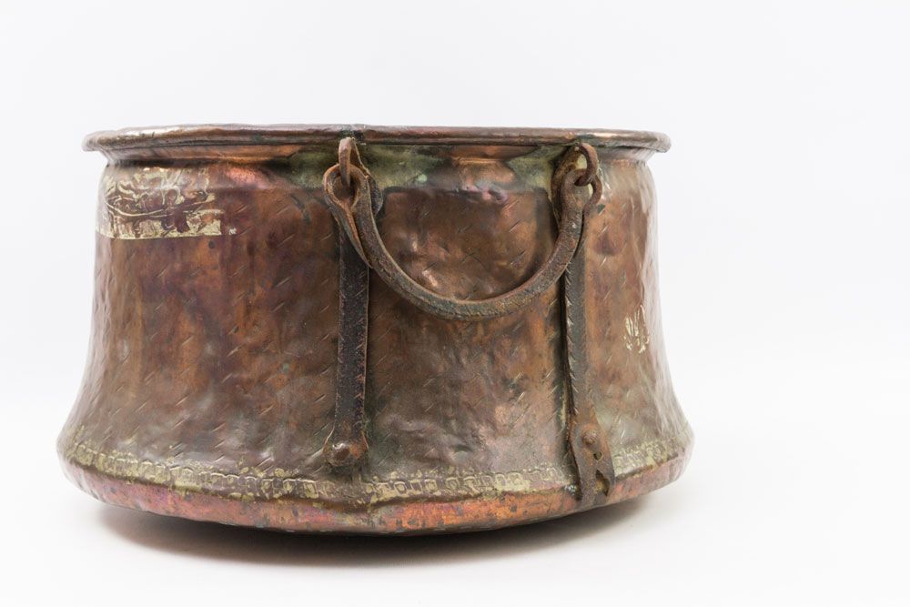 Kübel und Kanne aus Metall. ORIENTALISCH, 20. Jh. grosser Kübel mit paar seitlichen Henkeln, D 49 cm/hohe Kanne, H 51 cm, Alters- und Gebrauchsspuren