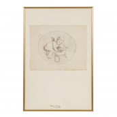 KÜNSTLER des 18. Jh., wohl Frankreich, "Zwei Putten mit Blumenkranz", im ovalen Bildausschnitt gezeichnet, unsigniert, Graphitstift/Bütten, HxB: ca. 19,5x24,5 cm (45x30 cm mit Rahmen). Leicht gebräunt, fleckig und Knickspuren. Am oberen Rand auf Unterlagenkarton montiert hinter Glas gerahmt.
