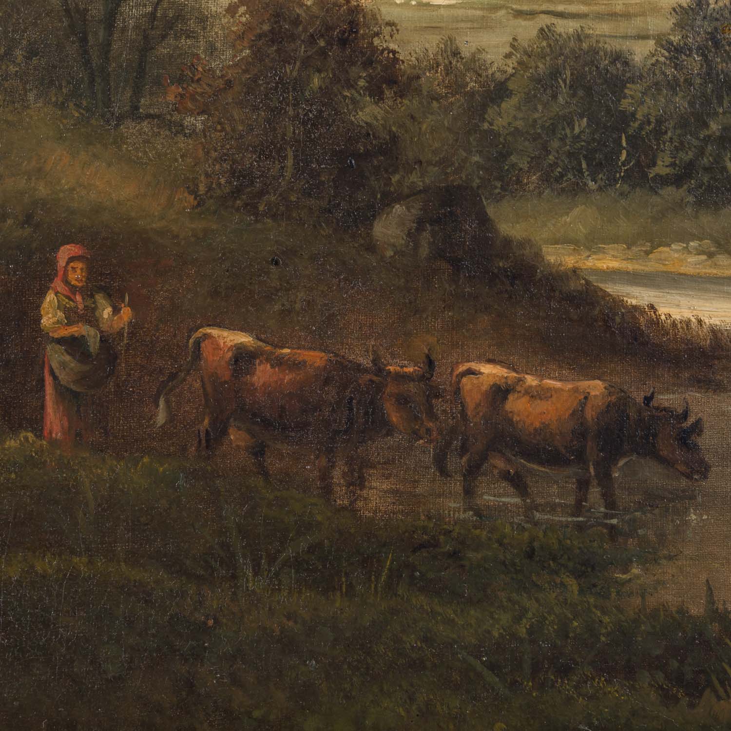 KÜNSTLER DES XIX 'Alpenlandschaft mit Gewässer und Personenstaffage'