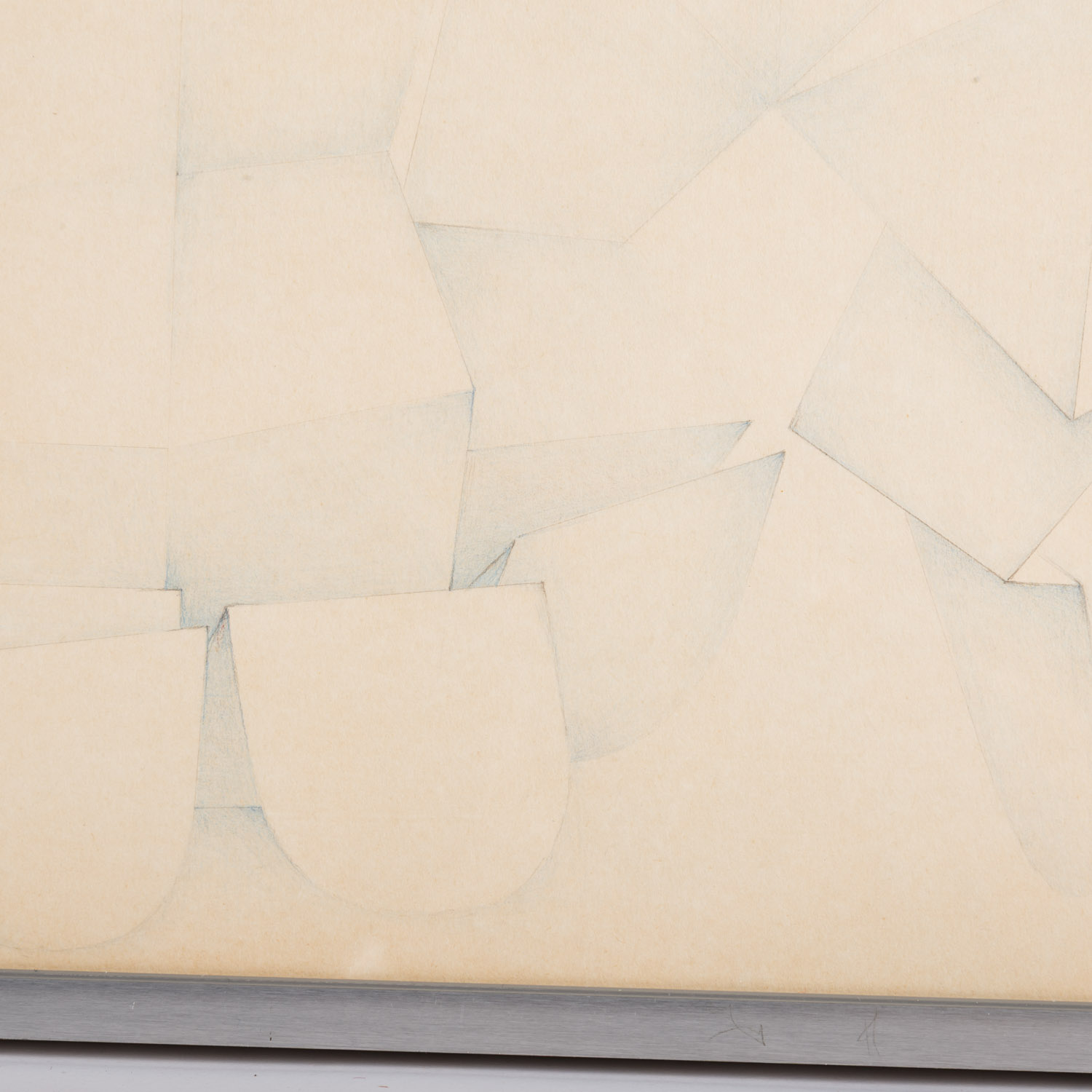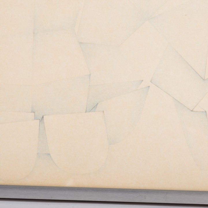 abstrakte Komposition in Blautönen, u.re. signiert und datiert. Farbkreide/Papier, HxB: ca. 30x30 cm (32x32 cm mit Rahmen). Altersspuren, leicht gebräunt. Mit verglastem Rahmen.