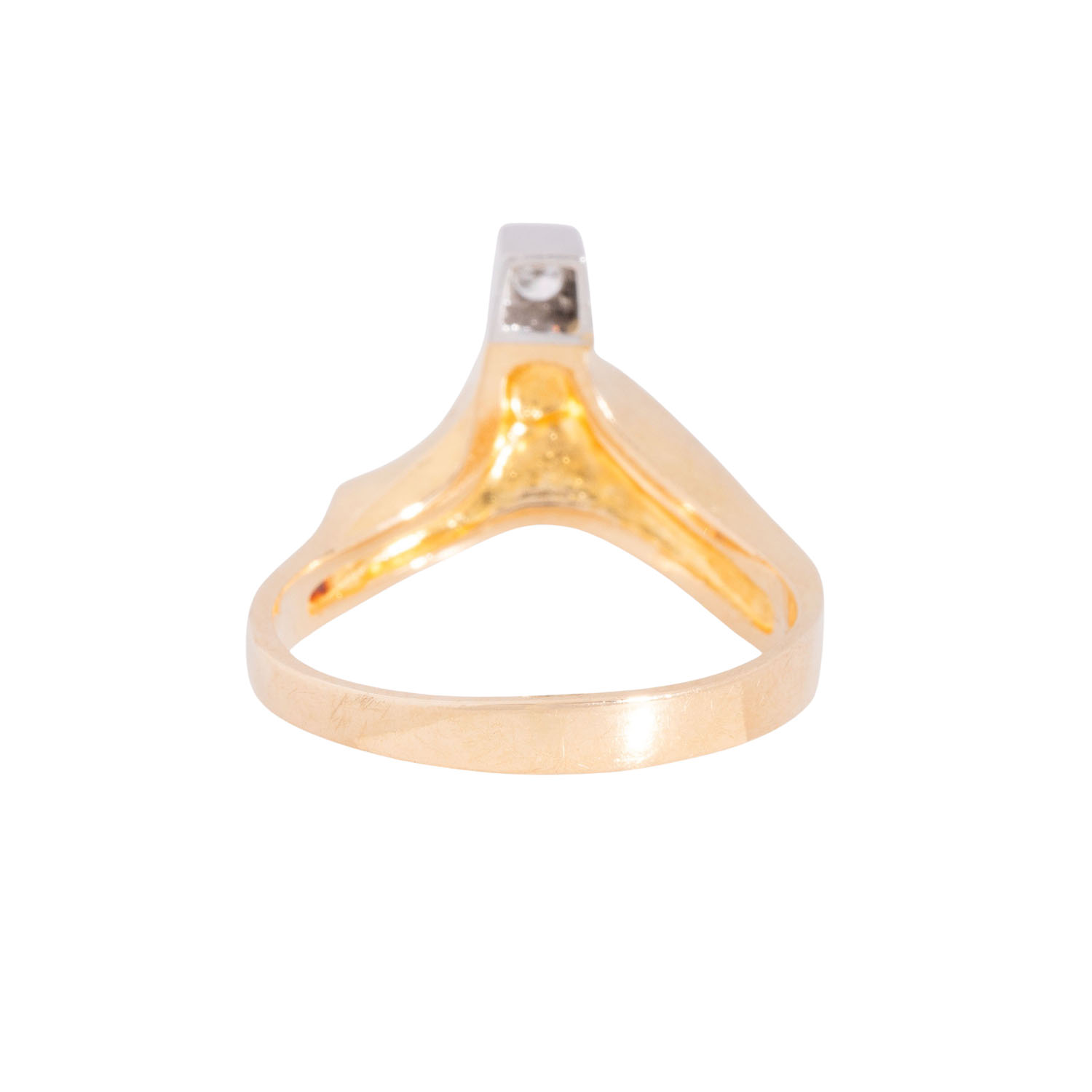 ca. 0,04 ct, gest., gute Farbe und Reinheit, GG 18K, 3,8 g, RW: 53, Ende 20. Jh., leichte Tragespuren, guter Erhalt, mit Markenpunzierung.