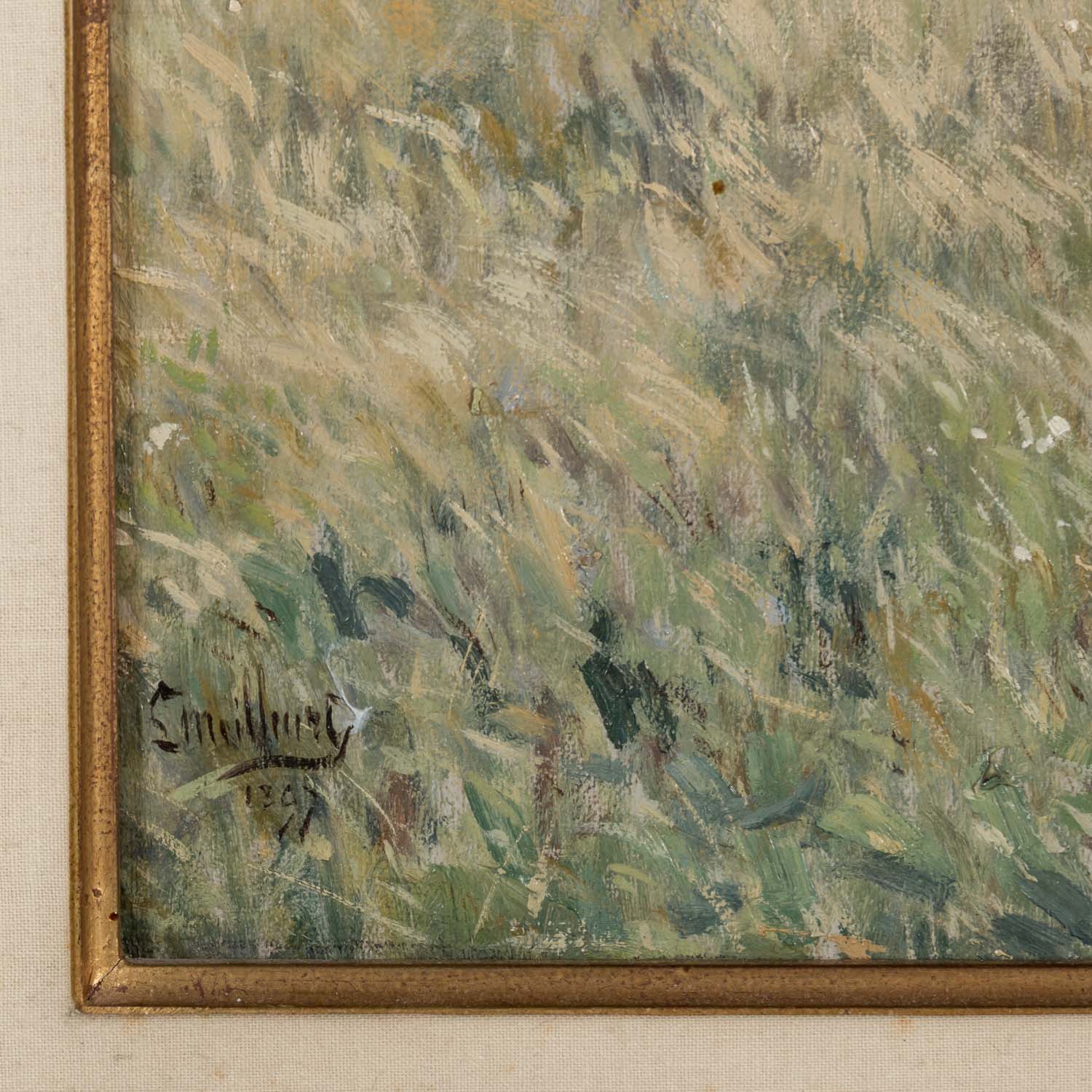 mit sommerlich blühenden Wiesen und Blumen, u.li. signiert und datiert 'Lemeilleur 1897', Öl/Leinwand, HxB: ca. 42x61 cm (64x82 cm mit Rahmen). Alters- und Beriebspuren, Craquelé, minim. Flecken. Mit Prunkrahmen. PROVENIENZ: Galerie du Léthé, Paris (verso Etikett und Rechnungskopie anbei).