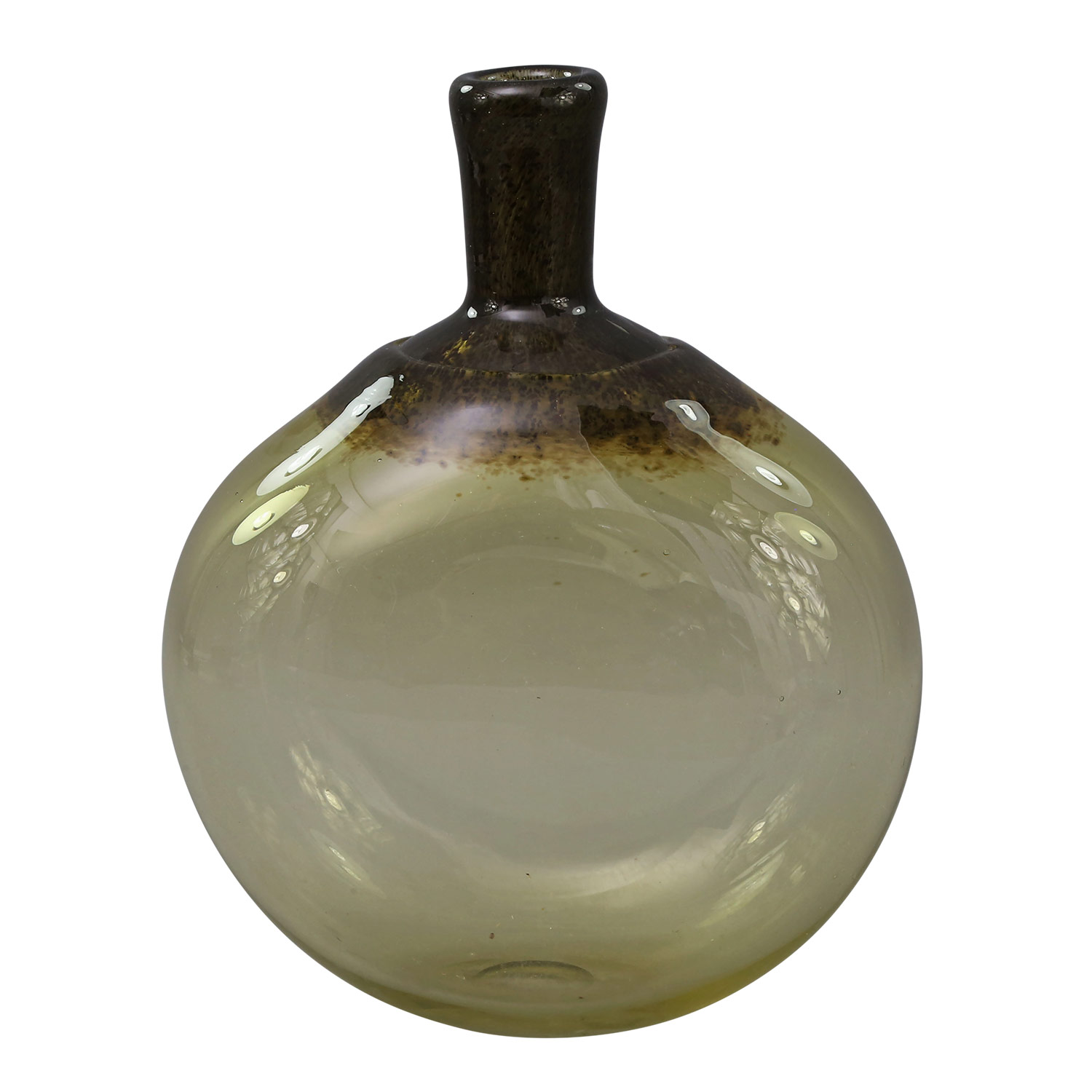 LINDSHAMMAR Glasvase, 20.Jh. grünes Klarglas, am Flaschenhals mit eingeschmolzenen Pigmenten, Boxbeutel, Ritzsignatur am Vasenboden: 'Lindshammar - G. Ander -1306/245', H. ca. 27cm. Gebrauchsspuren. Designer: Gunnar Ander (1908-1976) war ein schwedischer Designer. Er entwarf Glaswaren in Lindshammars Glashütte bis zu seinem Tod.