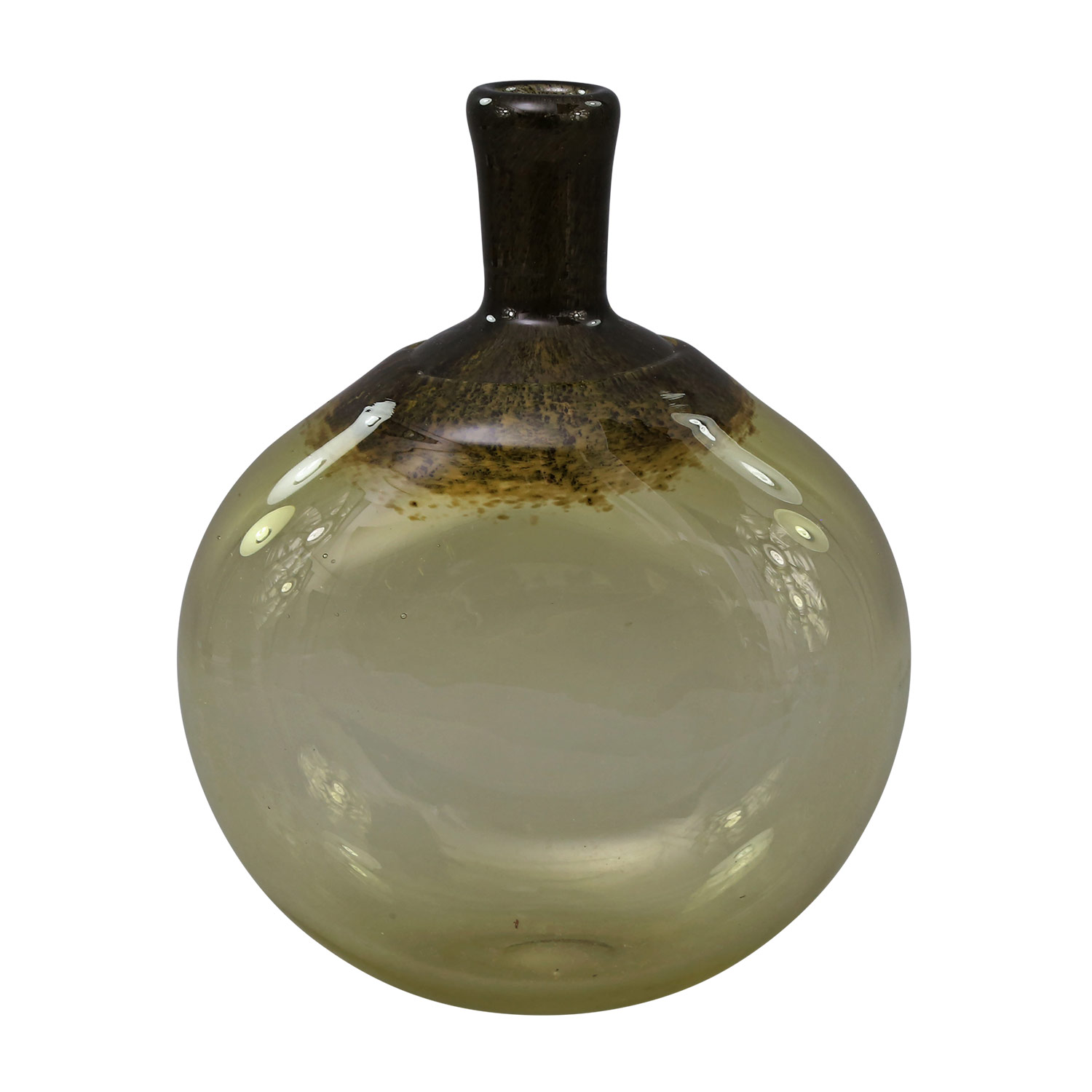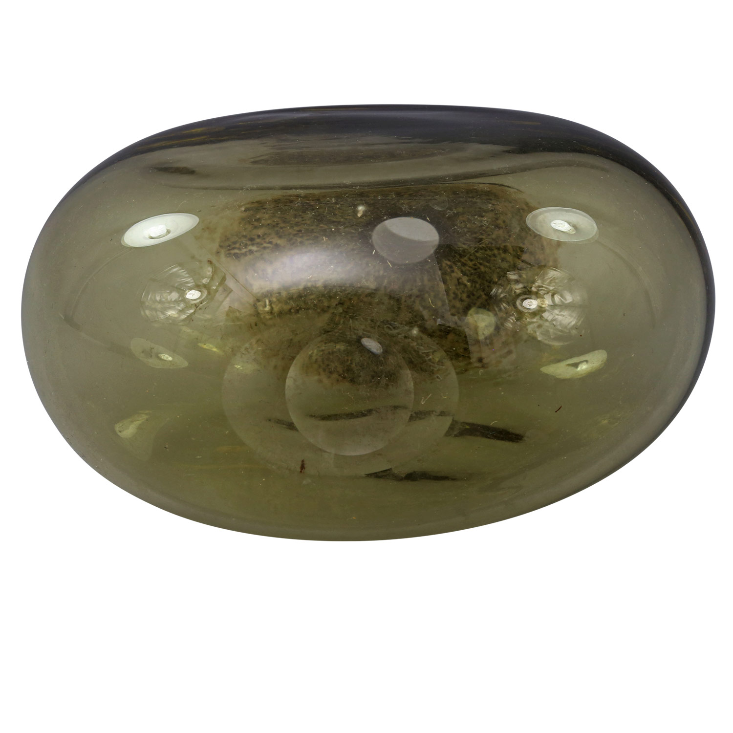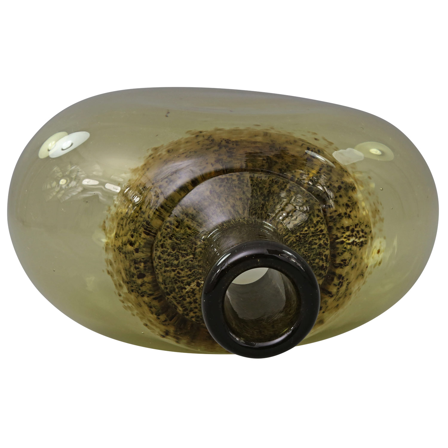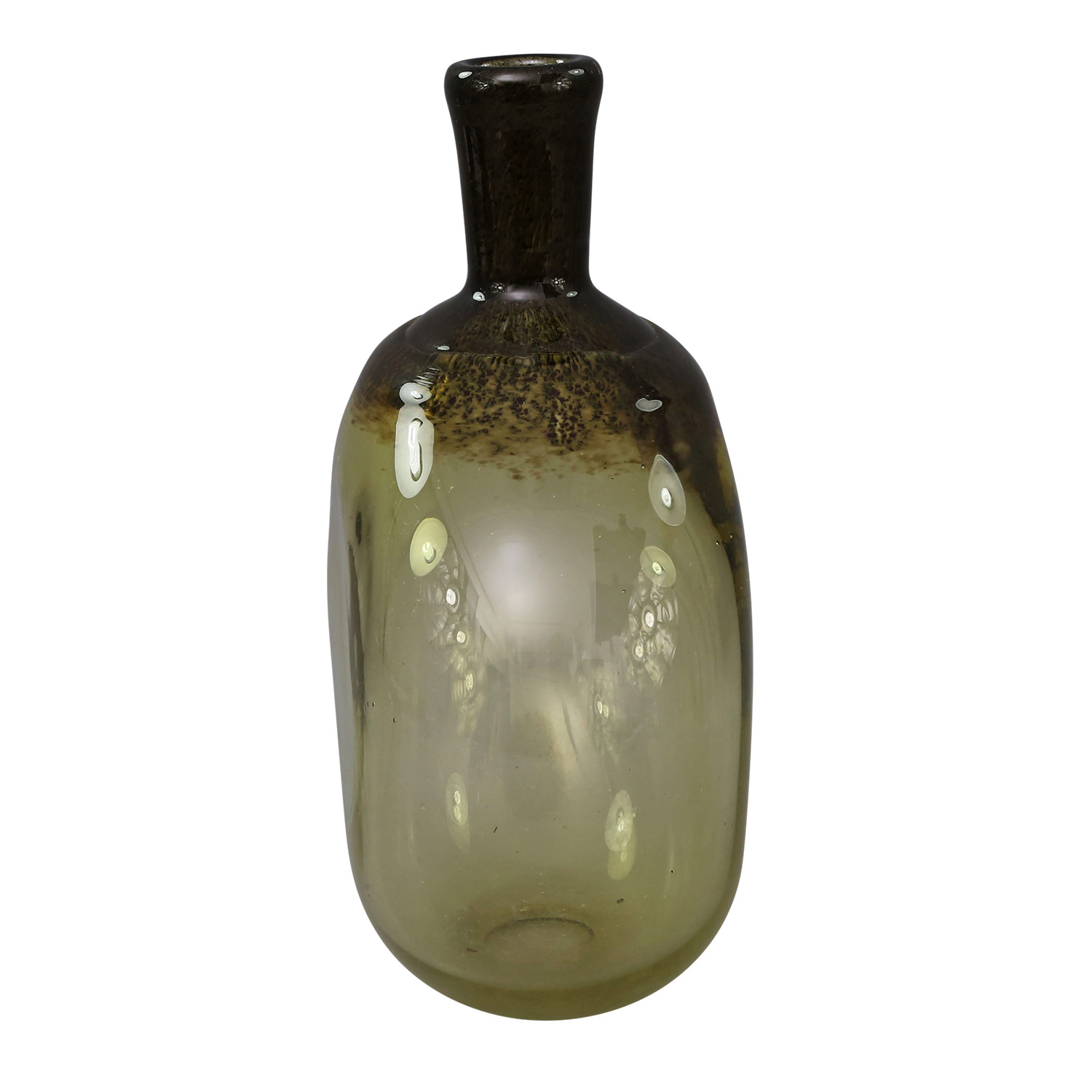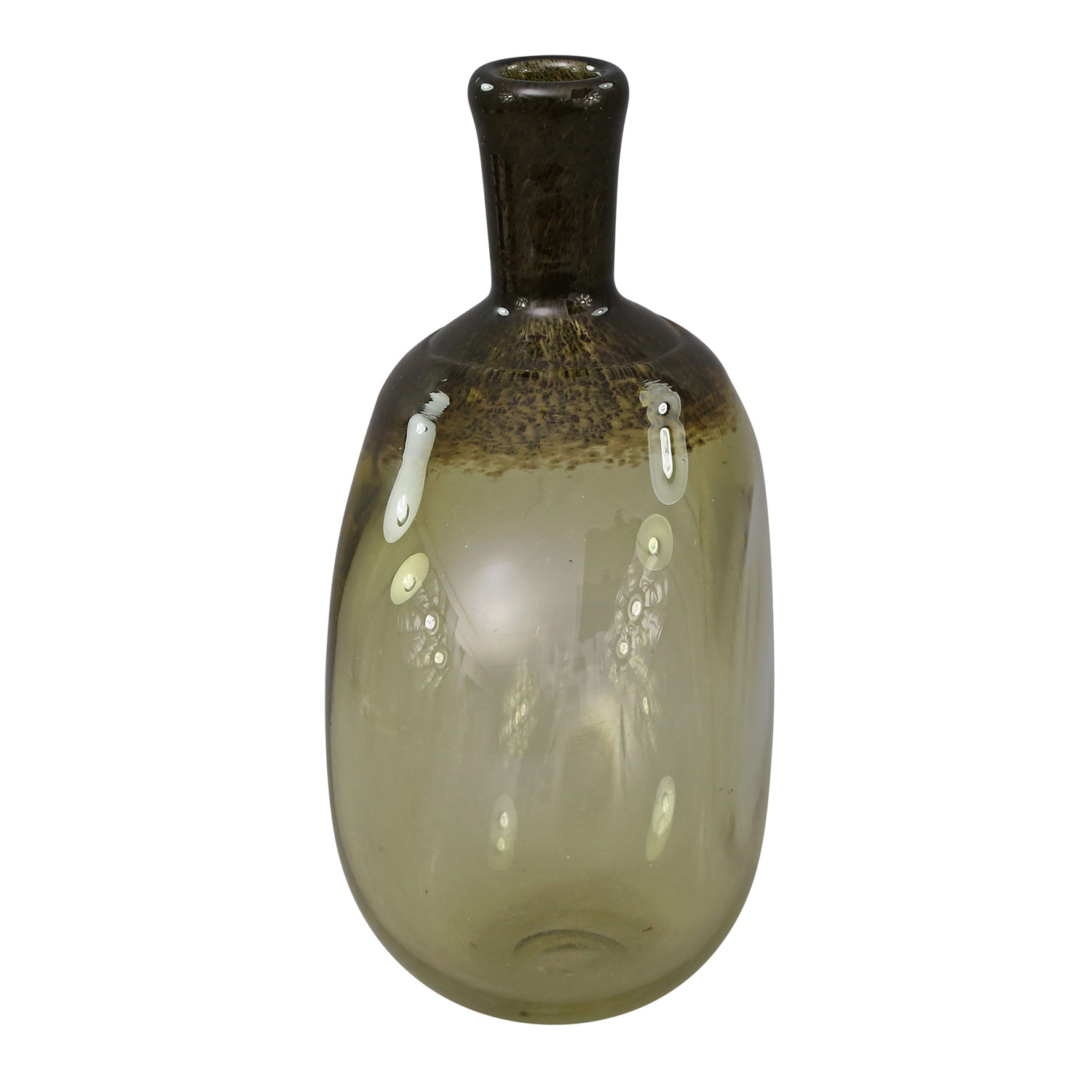 LINDSHAMMAR Glasvase, 20.Jh. grünes Klarglas, am Flaschenhals mit eingeschmolzenen Pigmenten, Boxbeutel, Ritzsignatur am Vasenboden: 'Lindshammar - G. Ander -1306/245', H. ca. 27cm. Gebrauchsspuren. Designer: Gunnar Ander (1908-1976) war ein schwedischer Designer. Er entwarf Glaswaren in Lindshammars Glashütte bis zu seinem Tod.