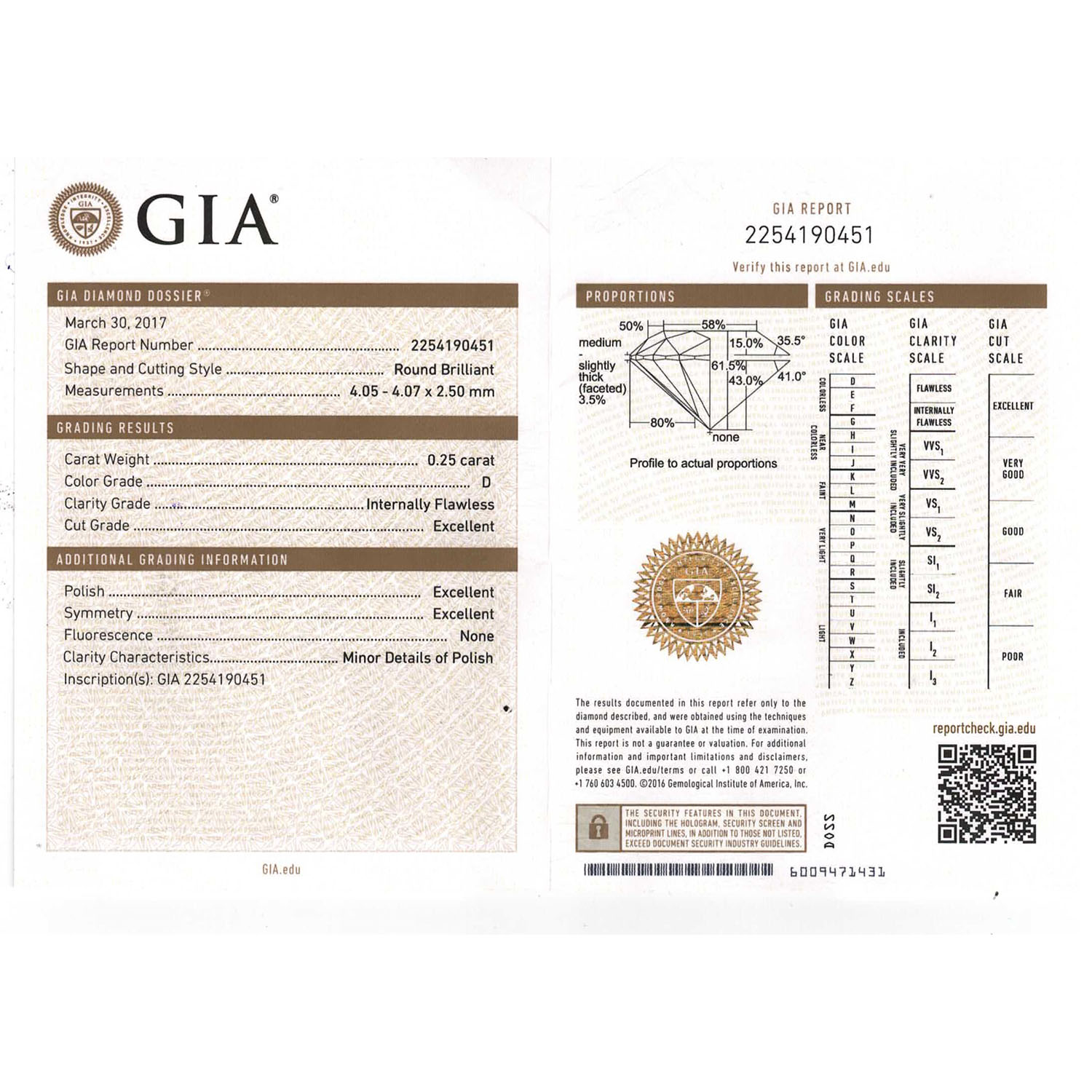 Proportionen: sehr gut, Symmetrie: sehr gut, Schliff: sehr gut, Fluoreszenz: keine, GIA-Zertifikat 2254190451 vom 03/2017 inklusive.
