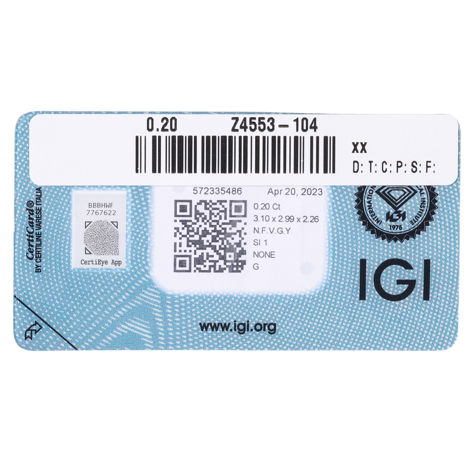 Loser Diamant 0,20 ct, NFVGY