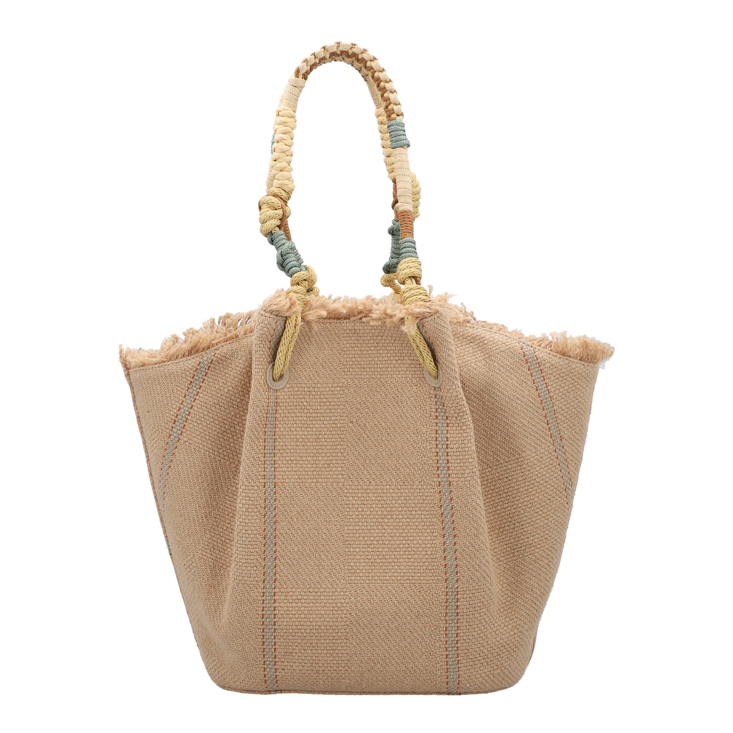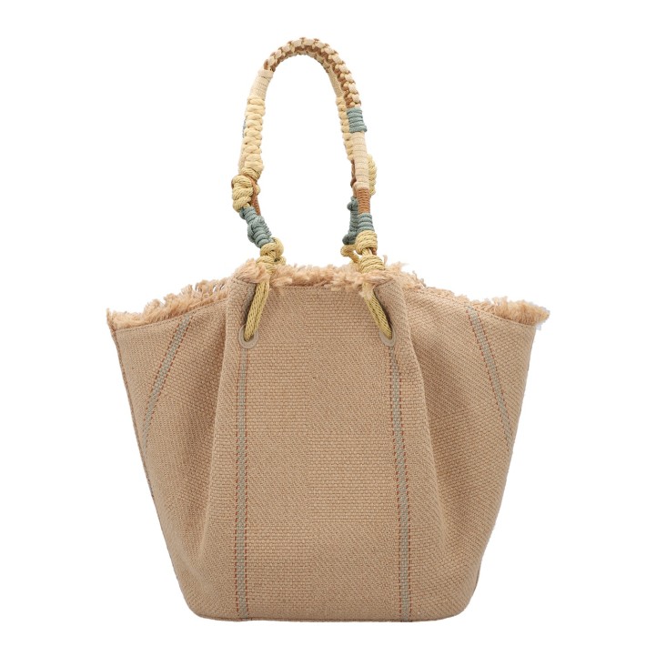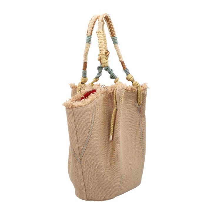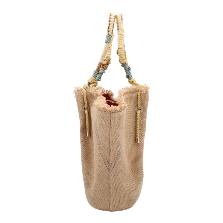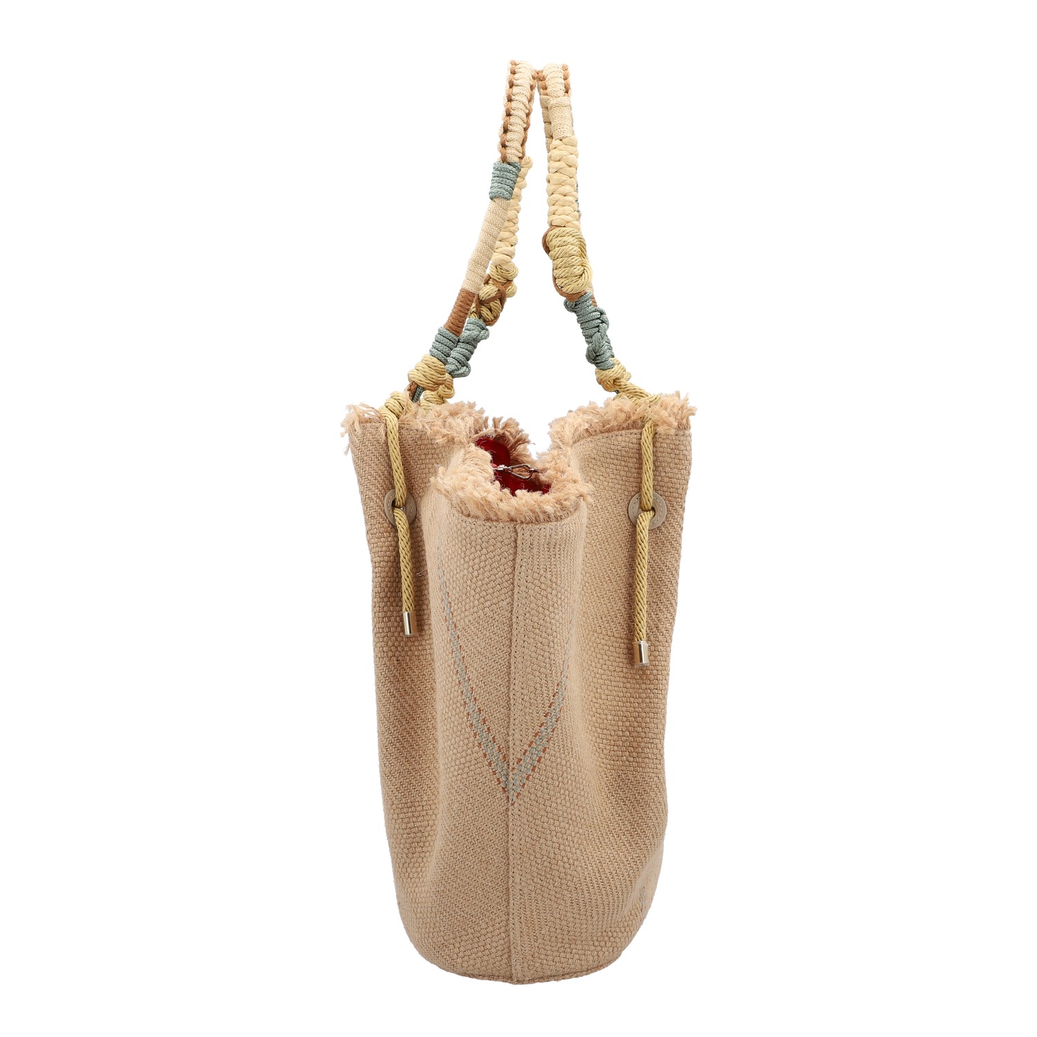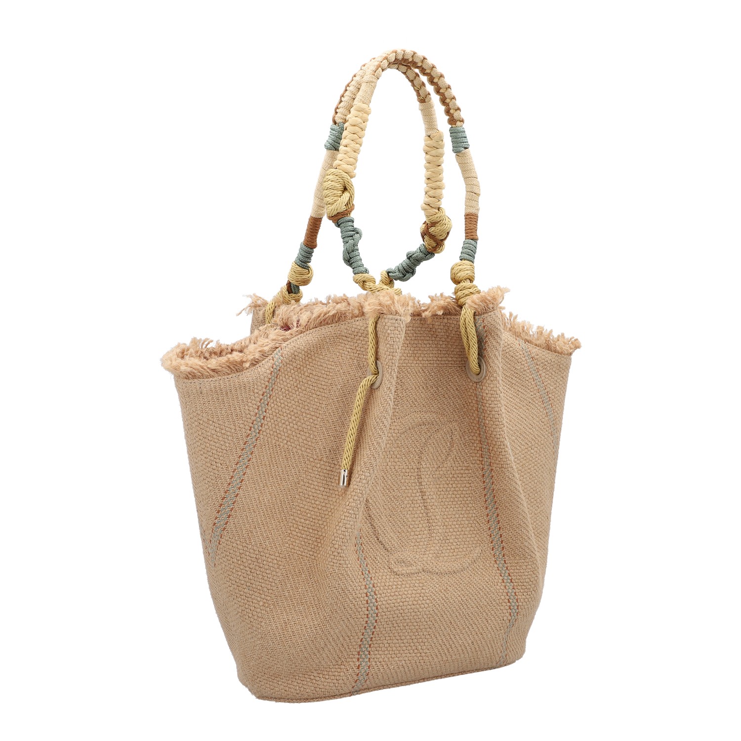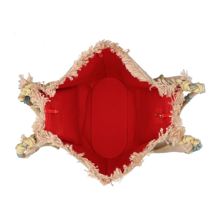 NP.: 1.390,-€. Korpus aus Jute in Natural. Front mit Logo, dekorative Henkel mit goldfarbenen Details. Rotes Innenleben. Guter Erhalt. 29x13x36cm.