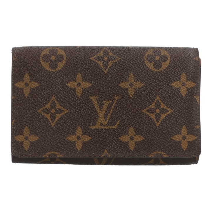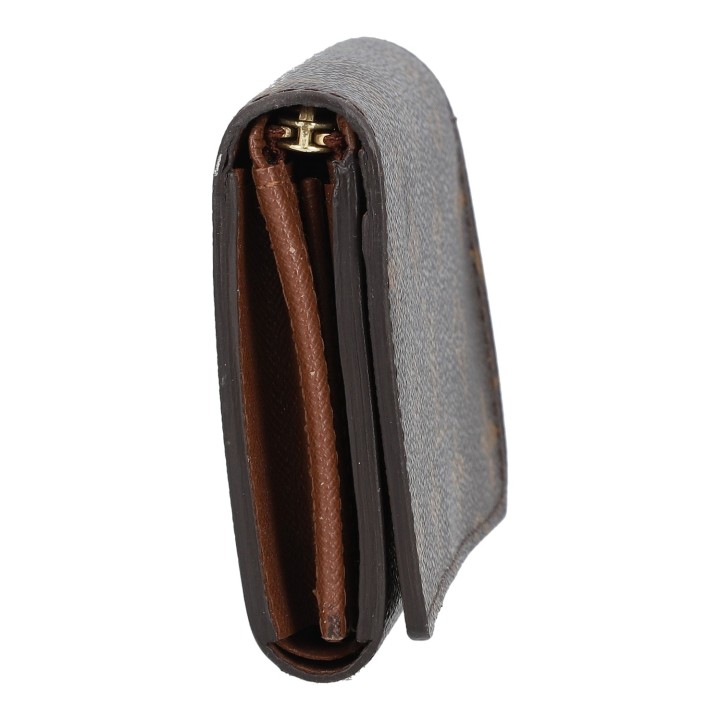 Monogram Canvas Serie mit Innenleben aus Leder in Braun. Diverse Innenfächer. 14x9cm. Gebrauchsspuren vorhanden.