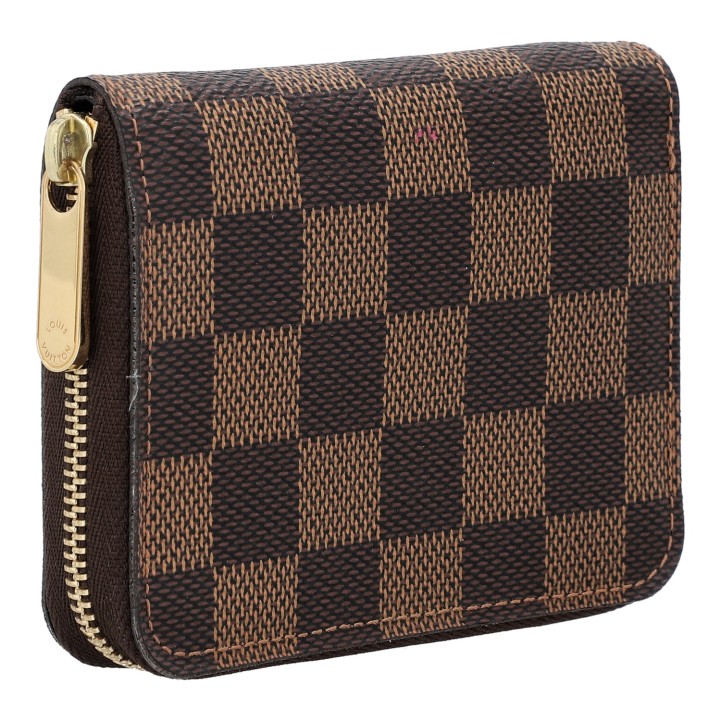 Koll. 2012. Damier Ebene Canvas Serie mit umlaufendem, goldfarbenem Reißverschluss. Innenleben in Braun mit diversen Kartenfächern. Guter Erhalt. 11x8,5cm.
