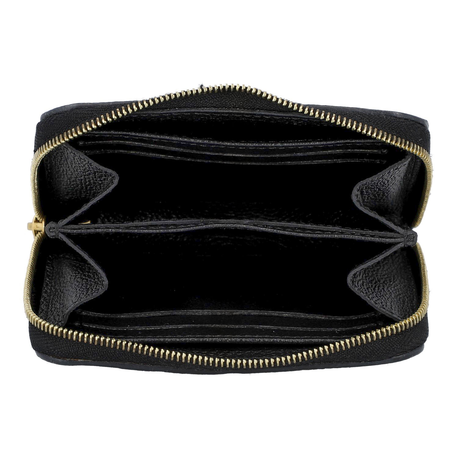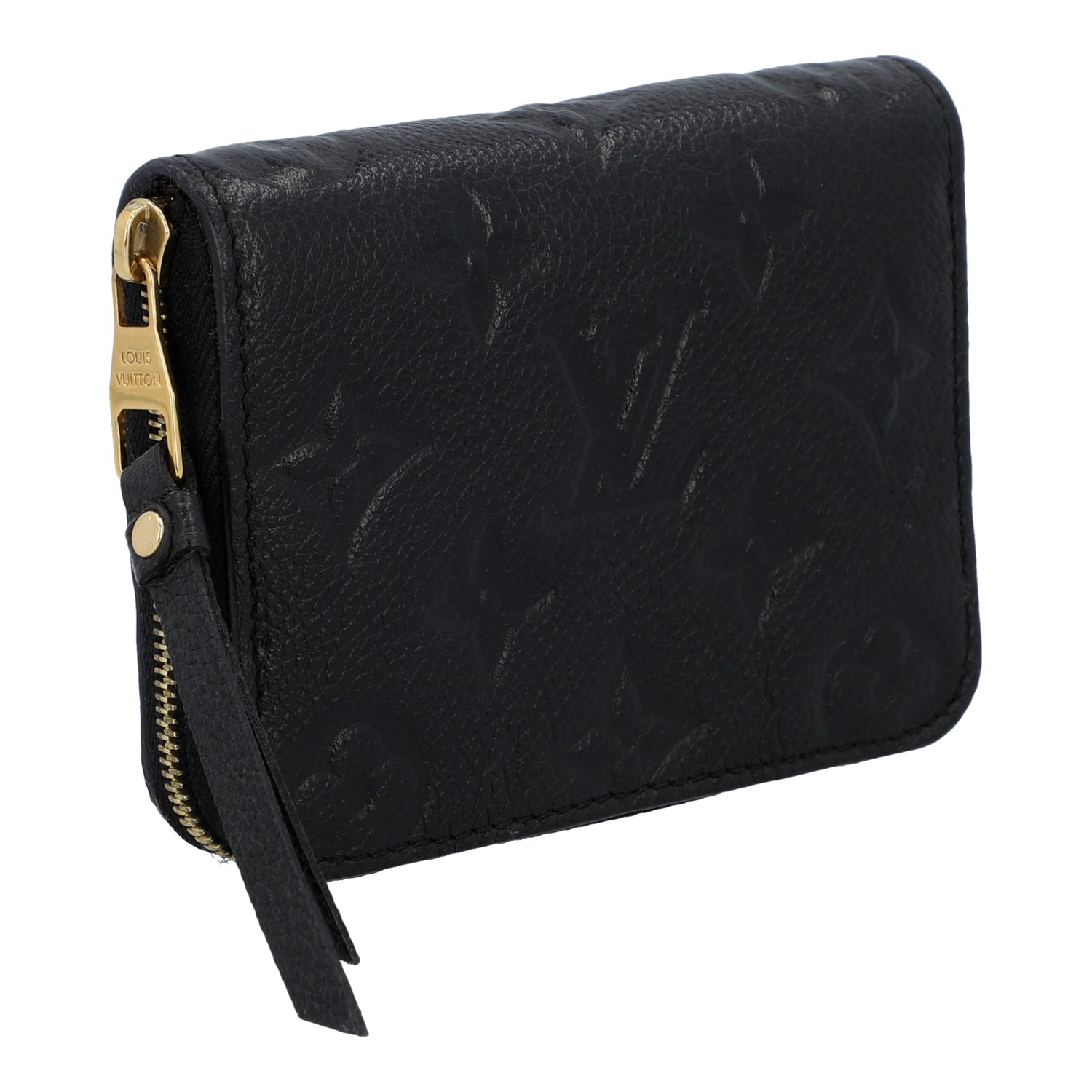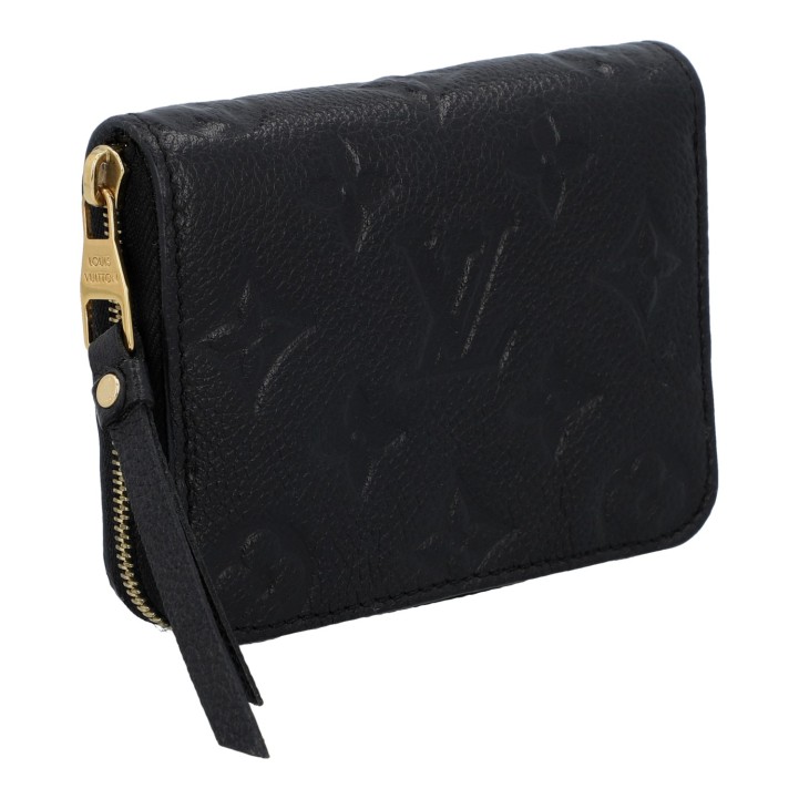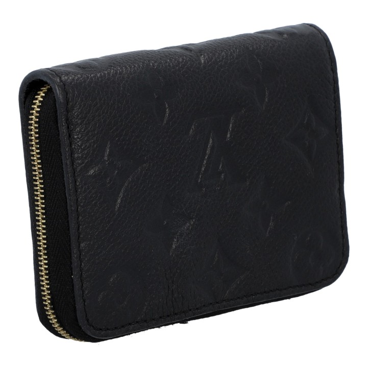 Akt. NP.: 510,-€. Empreinte-Leder-Serie in Schwarz mit goldfarbener Hardware und umlaufendem Reißverschluss. Innenraum mit fünf Kartenfächern und vier großen Fächern. Box und Staubbeutel sind vorhanden. Tragespuren vorhanden.