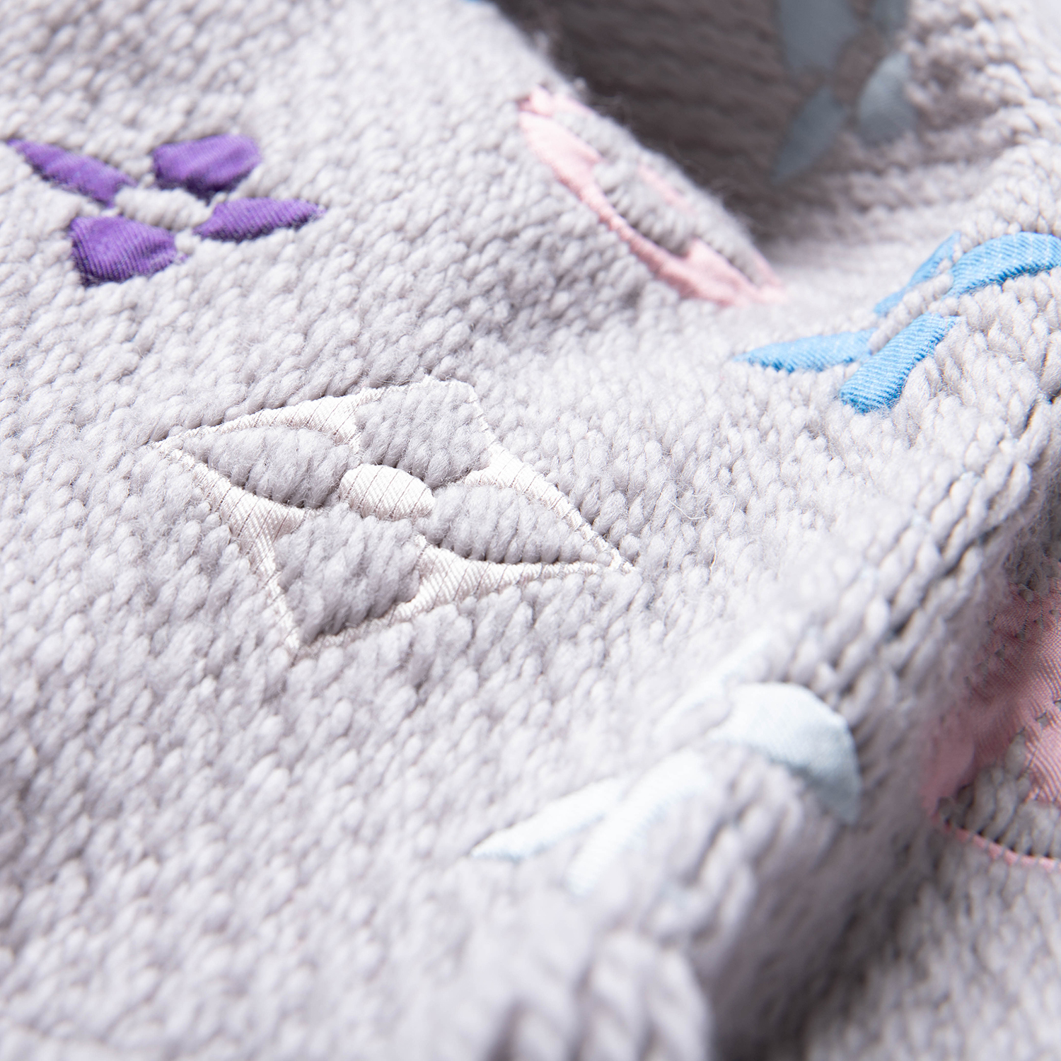 81% Wolle, 19% Seide in Hellgrau/Rosa mit Monogram in Multicolor. Guter Erhalt. Länge ca. 170cm.