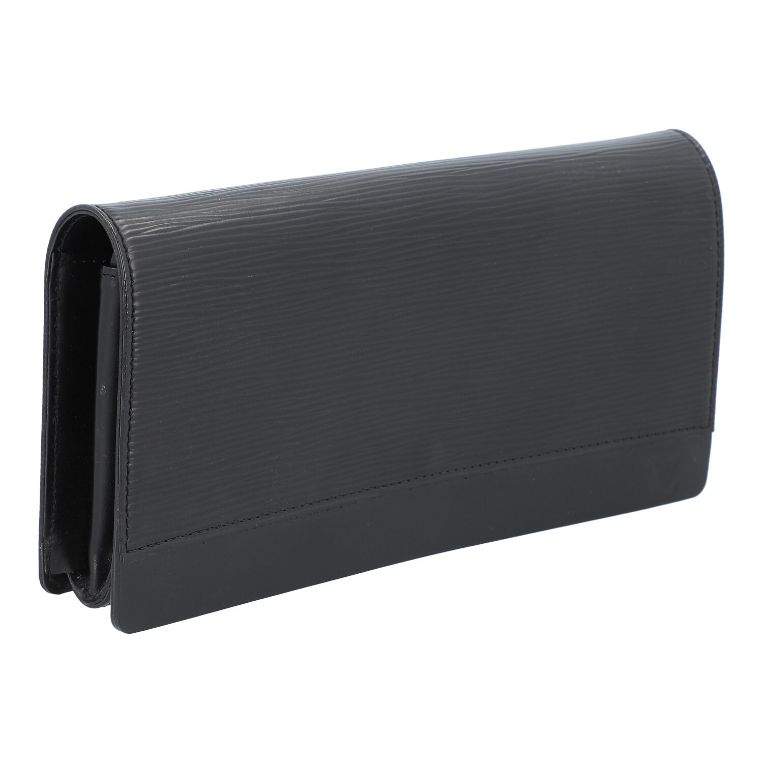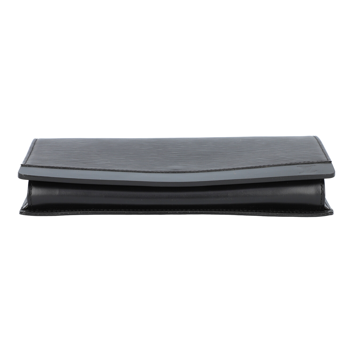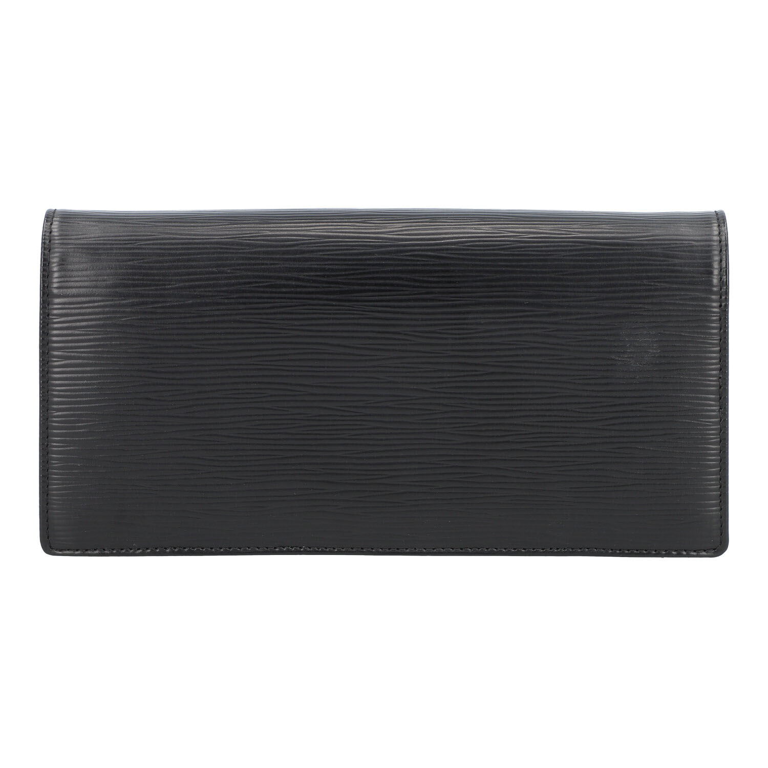 Epi Leder Serie mit goldfarbener Hardware, Überschlag mit Druckknopfverschluss, schmaler Schulterrimen mit filigraner Schließe. Innenraum mit vier Kartenfächern und einem zusätzlichen Fach. Gebrauchsspuren vorhanden. 21 x 11 x 3,5 cm.