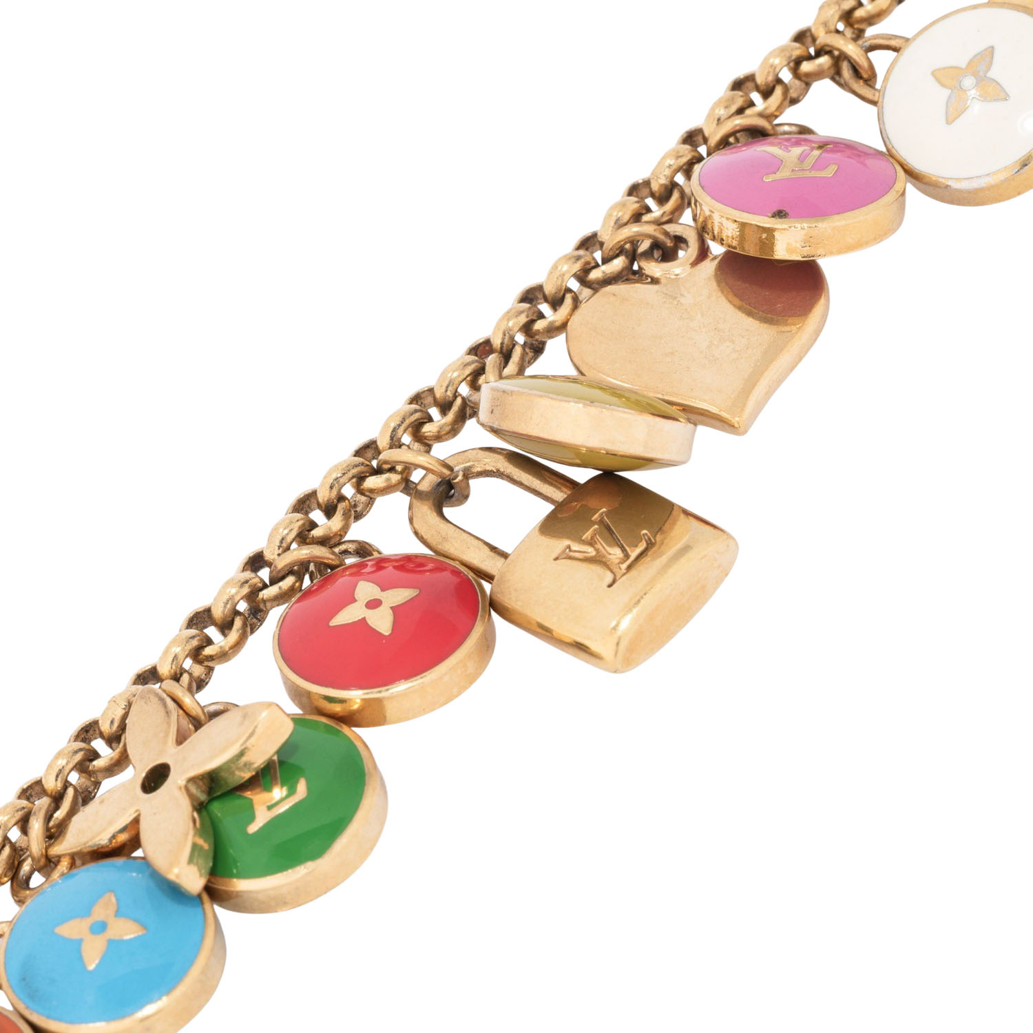 Goldfarbene Gliederkette mit Logo-Charms in Multicolor. Leichte Gebrauchsspuren vorhanden.