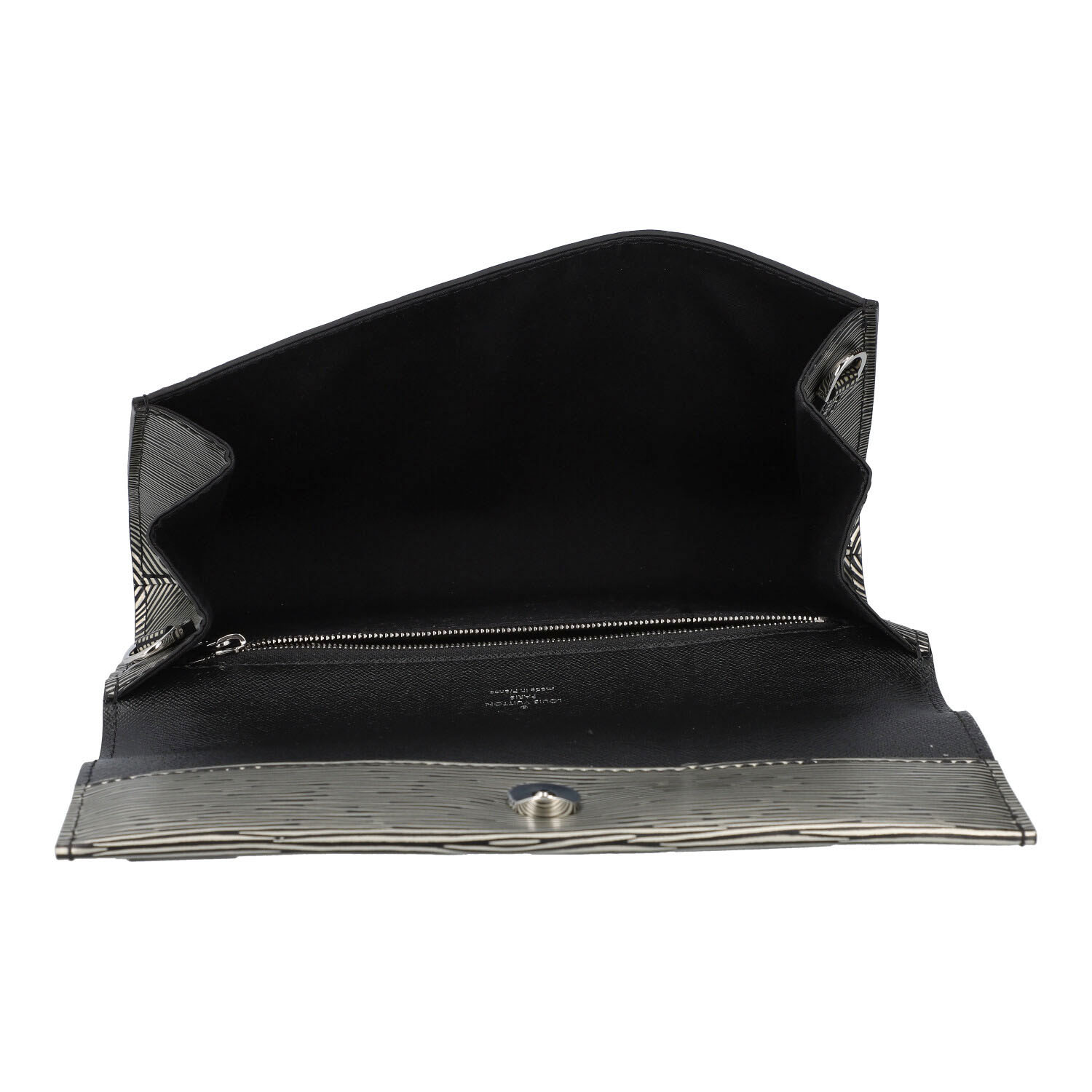 Koll. 2017. Epi Leder Serie in Silberfarben und Schwarz. Tragbar als Clutch/Handtasche oder mit Schulterriemen zum umhängen. Staubbeutel und Schulterriemen anbei. Sehr guter Erhalt. 23x5x15cm.