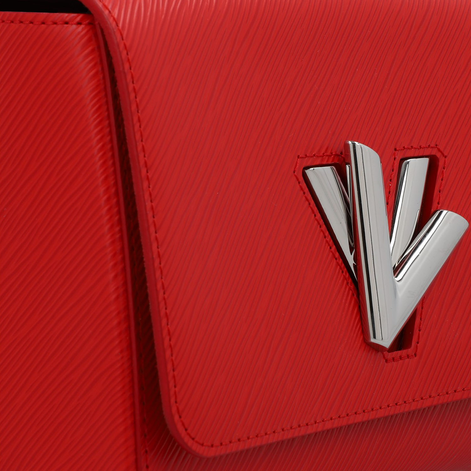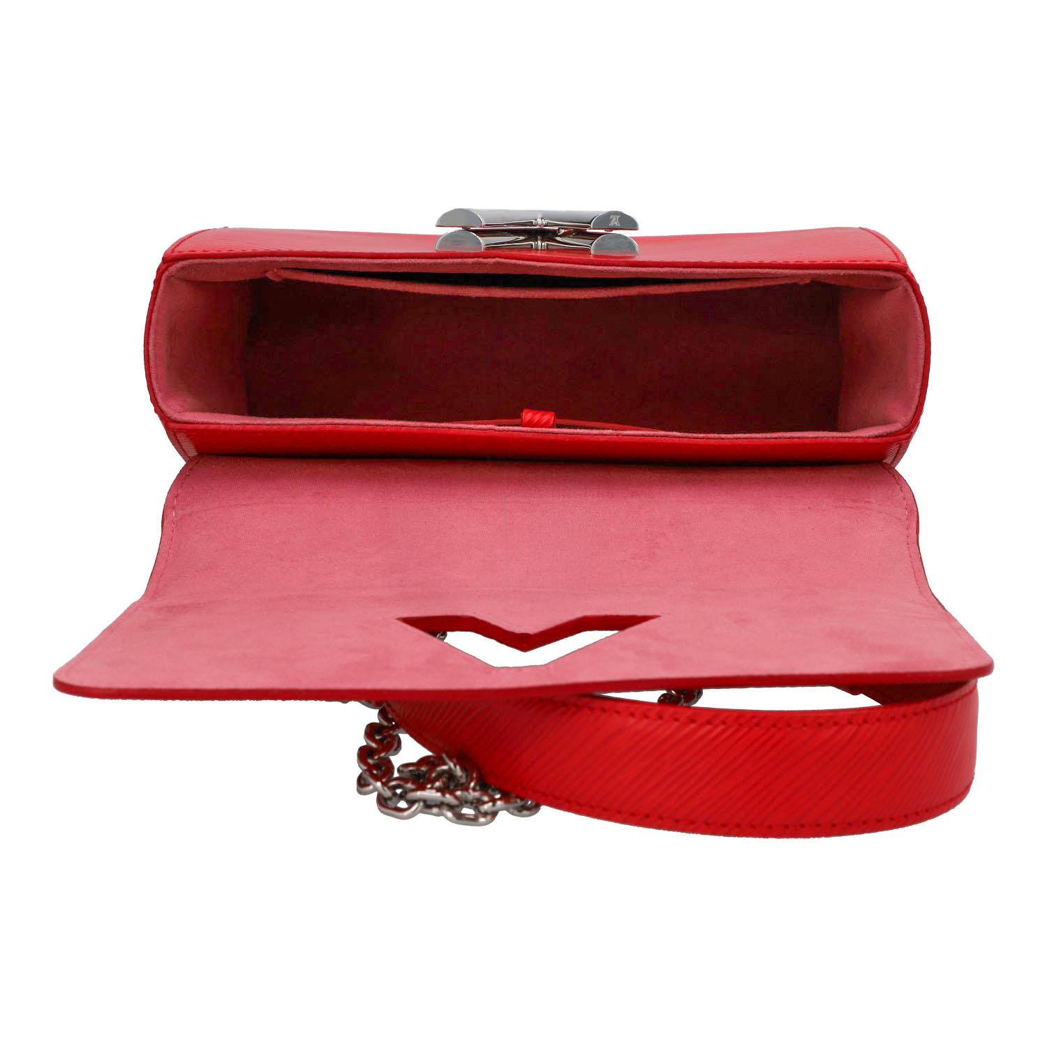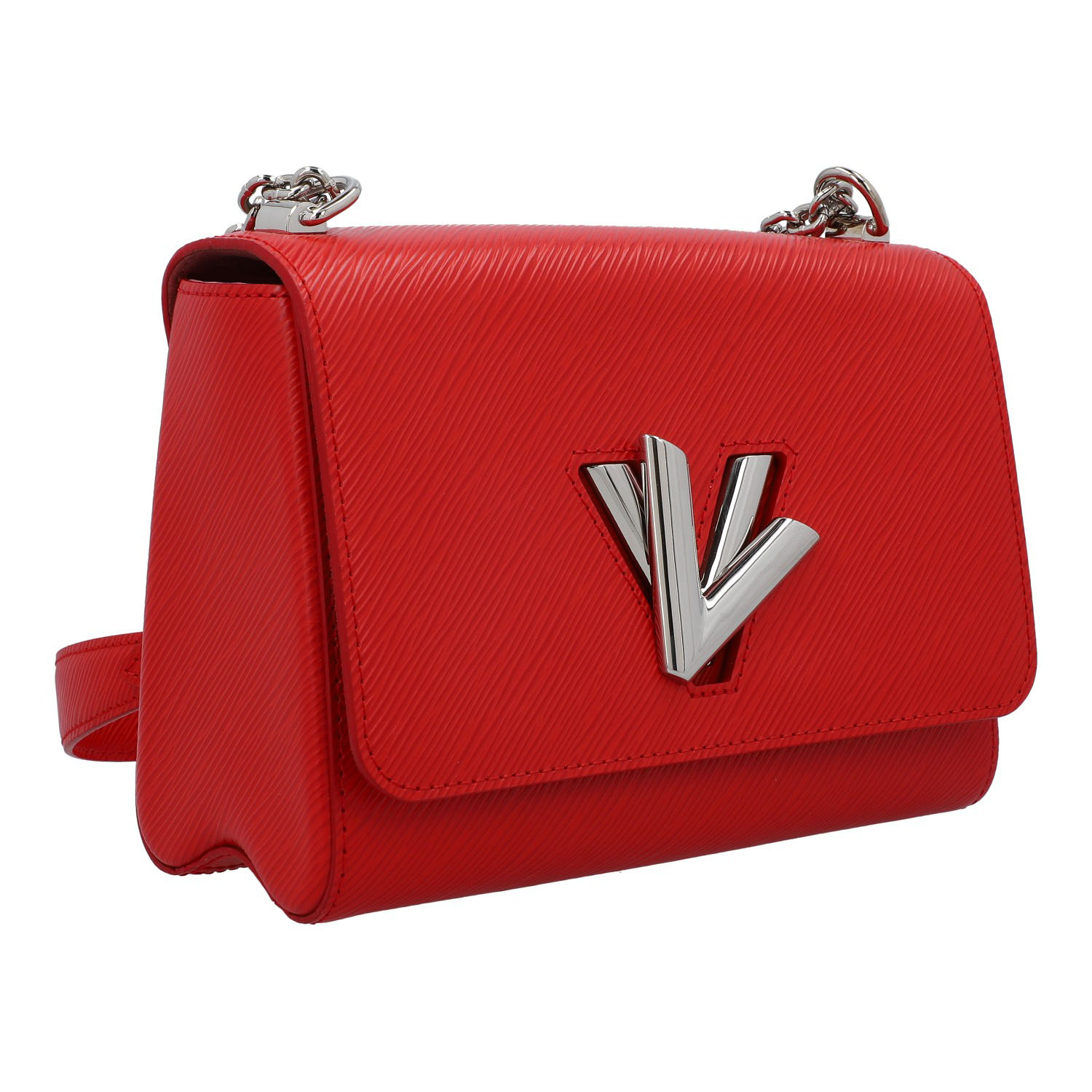Koll. 2018. Epi Leder Serie in Rot mit silberfarbener Hardware, Logo-Drehverschluss am Überschlag, Ketten-/Lederriemen. Staubbeutel und Spiegel anbei. Sehr guter Erhalt. 23 x 17 x 9.5 cm.