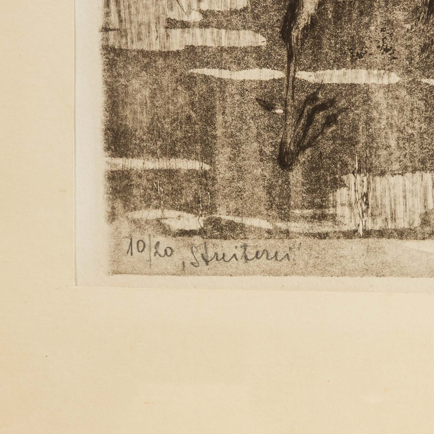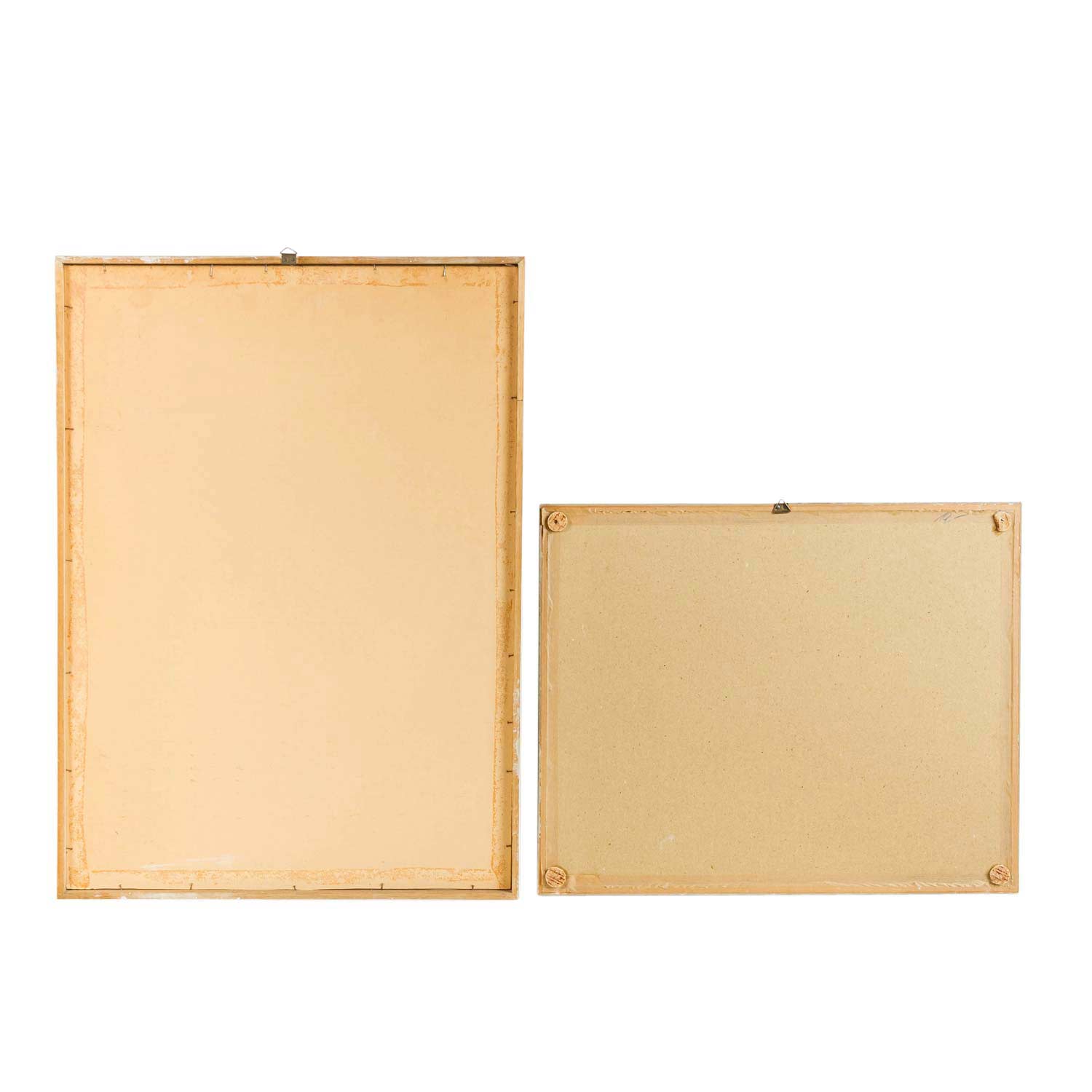 1x 'Streiterei', Aquatintaradierung/Papier, darunter mit Bleistift von Hand num. 10/20, betitelt und signiert, HxB: Platte ca. 50x33 cm, Außenmaße Rahmen ca. 72x52 cm; 1x 'Treck 1945', Lithographie/Papier, darunter mit Bleistift von Hand num. 5/20, betitelt und signiert, HxB: Platte ca. 25x32 cm, Außenmaße Rahmen ca. 44,5x54,5 cm. Je gebräunt und Lichtrand, 1x fleckig. Je im Passepartout hinter Glas gerahmt.