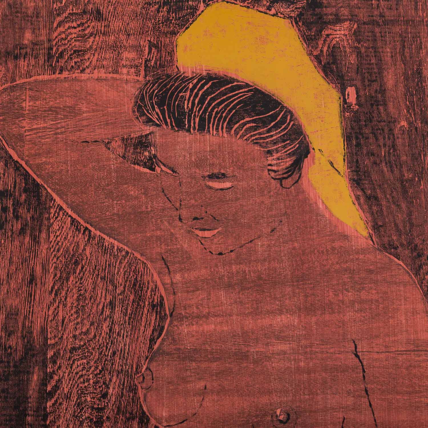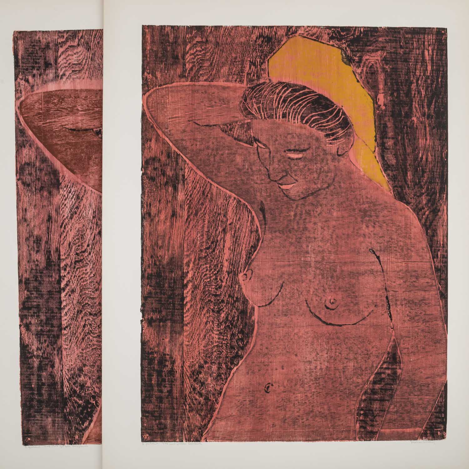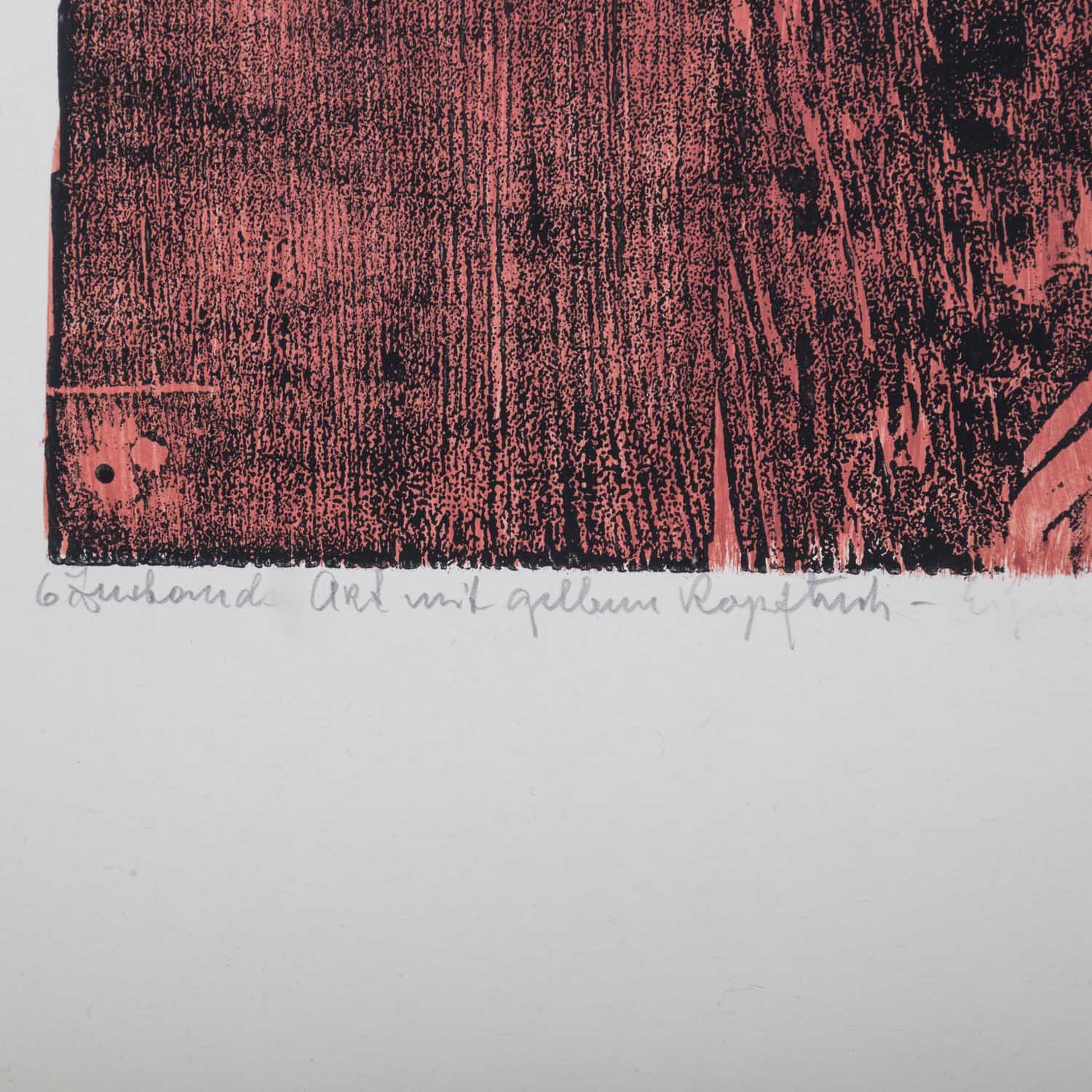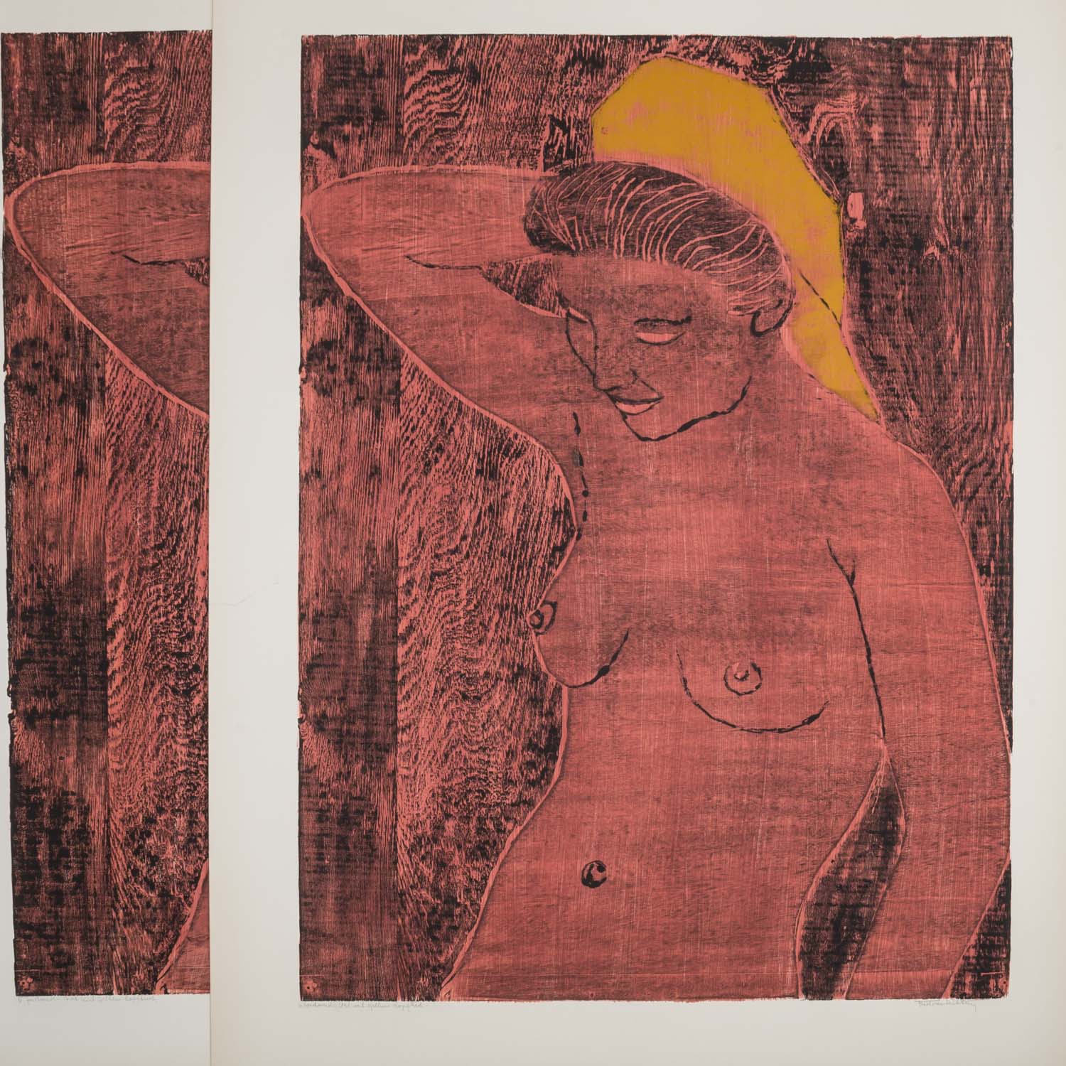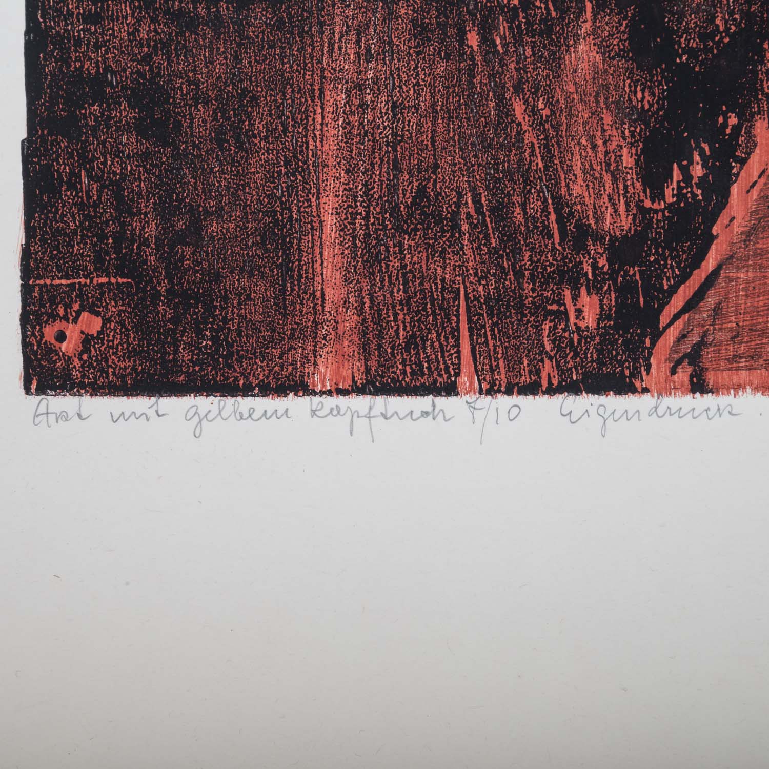 | LÜBTOW, FRED von (1908-1994), 4x 'Nude with yellow headscarf', color woodcut / cardboard, each inscribed, titled and signed by hand in pencil, 3rd, 5th and 6th condition and sheet 7/10, each self-print , HxW: plate approx. 75x55 cm sheet approx. 91x68 cm. Browned, outer leaf margins part. slightly damaged.