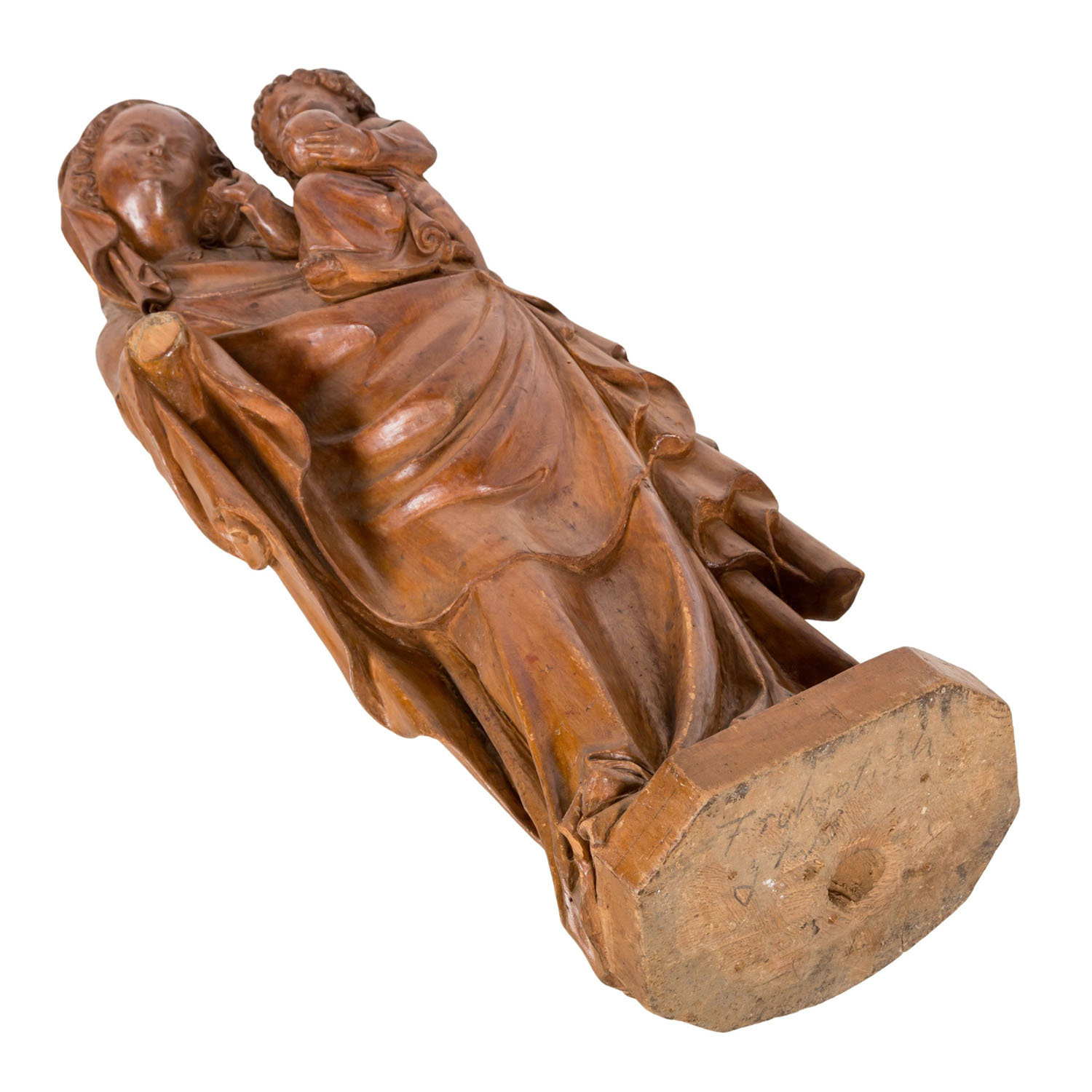 Provenienz: die vorliegende Skulptur entstammt der Auflösung der Sammlung der Familie Dettlinger aus Freiburg. Über fünf Generationen hinweg widmete sich diese Familie der Kunst der religiösen Bildhauerei und Restaurierung und prägte damit eine lange handwerkliche Tradition.