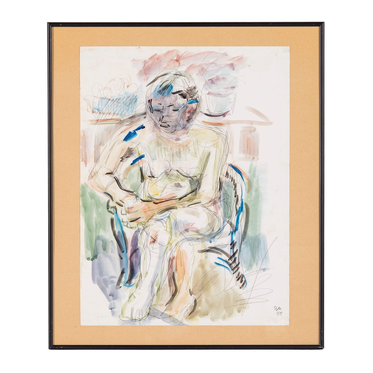 u.re. monogrammiert und datiert 'BM 84', Aquarell über Bleistift/Papier, HxB: ca. 56x42 cm (66x55,5 cm mit Rahmen). Altersspuren, gebräunt und leicht gewellt. Mit verglastem Rahmen. VERSO Ausschnitt in Rahmenrückseite mit Bezeichnung des Künstlers.
