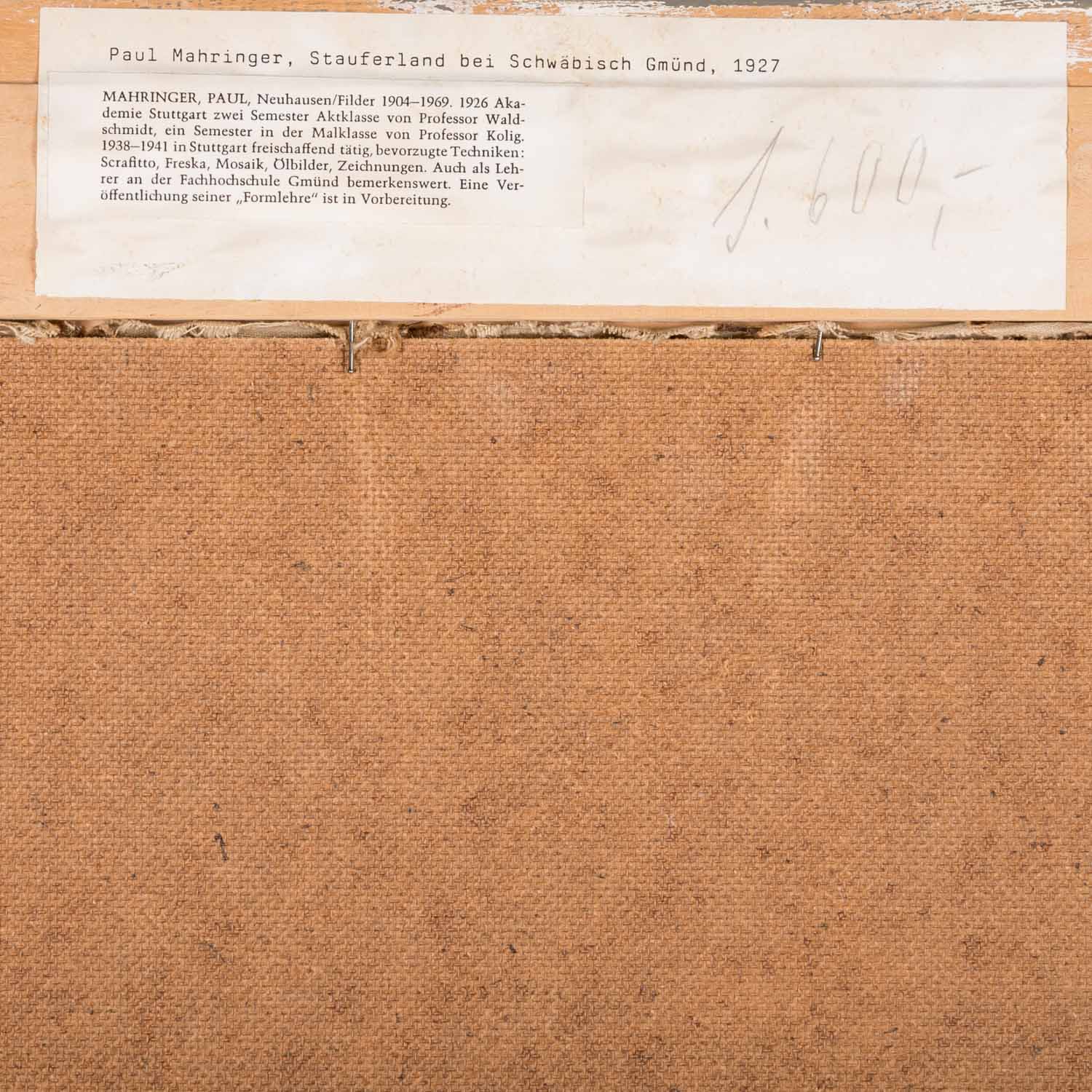 MAHRINGER, PAUL (1904-1969), 'Stauferland bei Schwäbisch Gmünd', 1927,