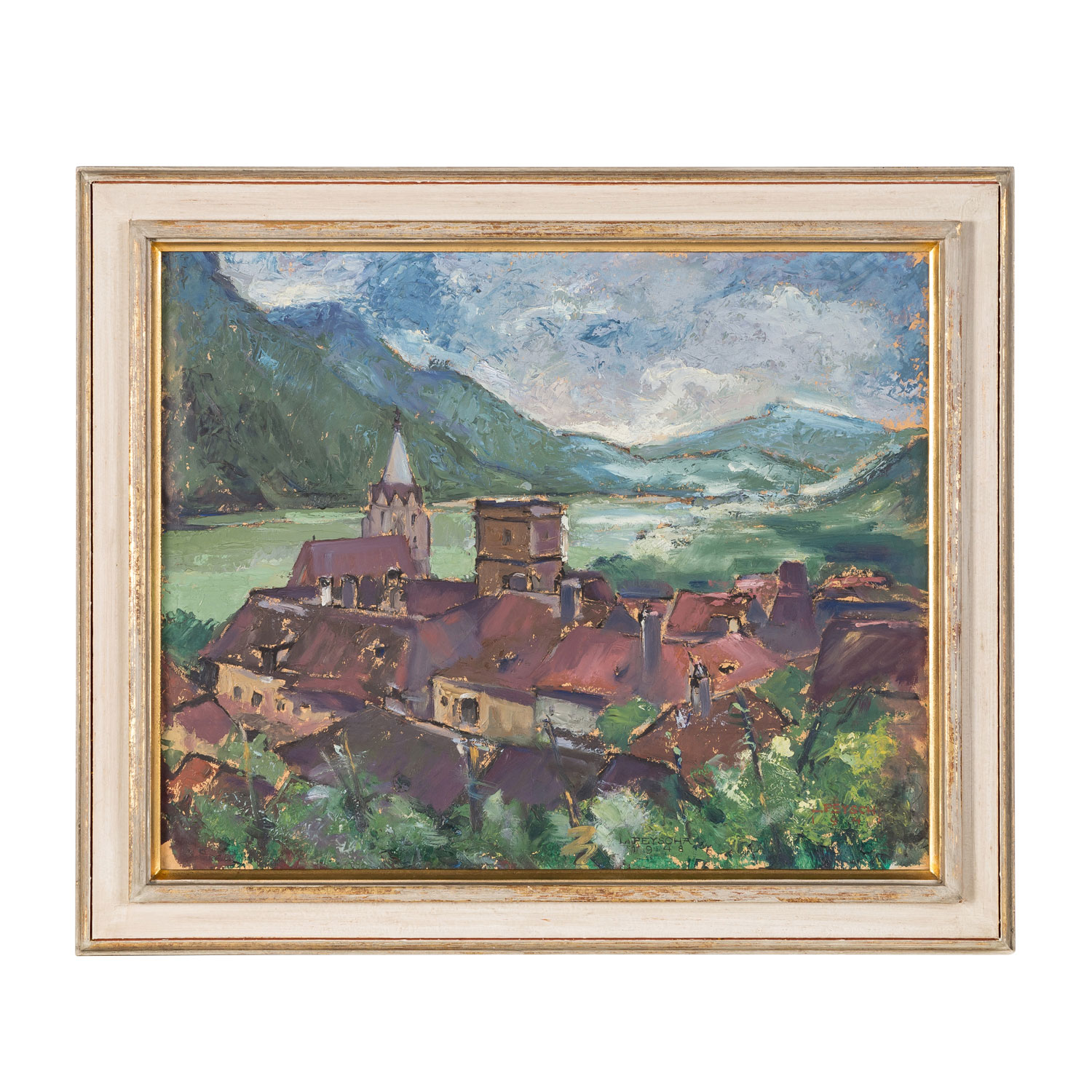 | PAINTER OF THE 20th CENTURY 'Town on the shore of a mountain lake'.