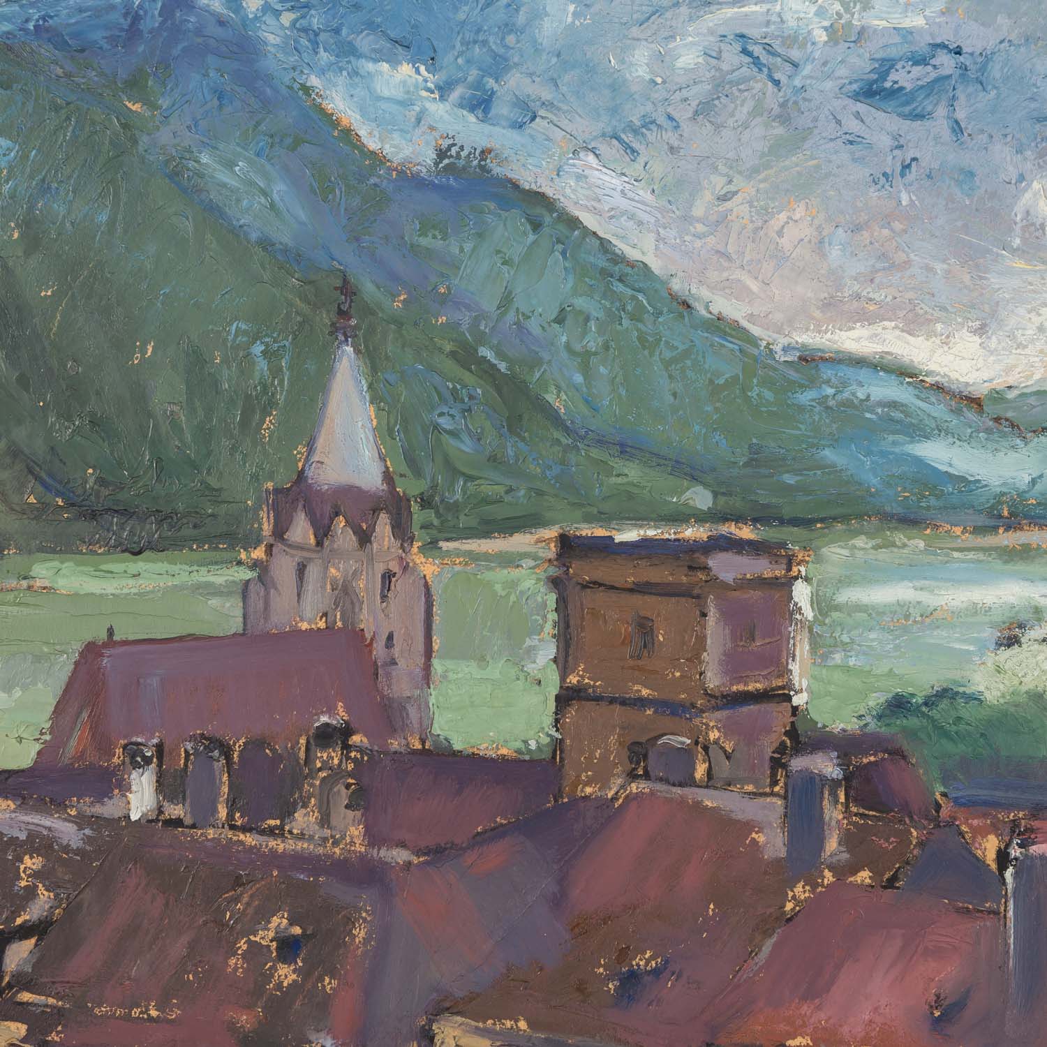 MALER DES 20. JAHRHUNDERTS 'Stadt am Ufer eines Bergsees'.