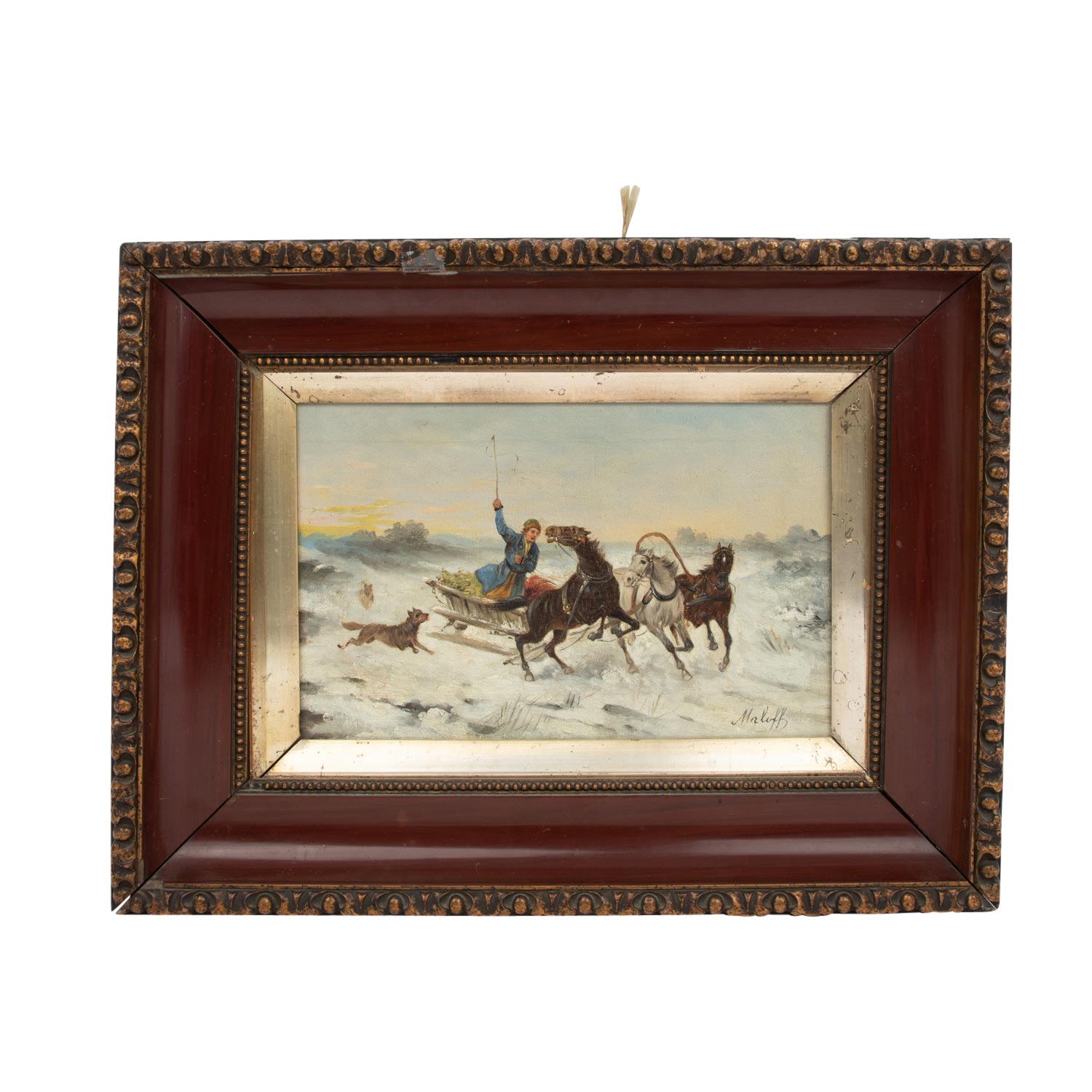 Oil on canvas, illegibly signed: 'Maloff?', HxW: 21/32 cm. Slight signs of age. Frame, HxW: 37/47 cm.