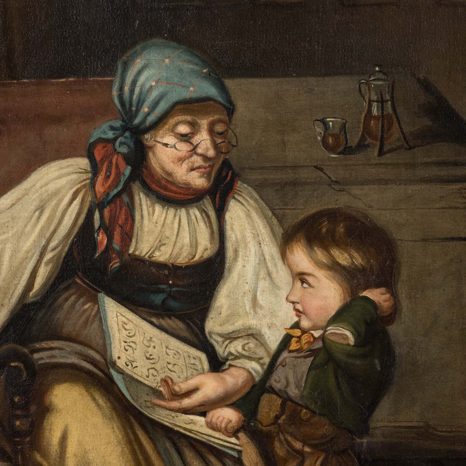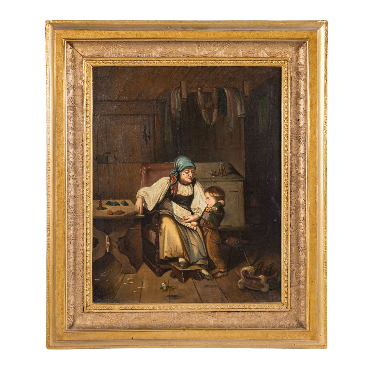 MALER DES XIX JAHRHUNDERTS 'Oma mit Enkel in der Stube'