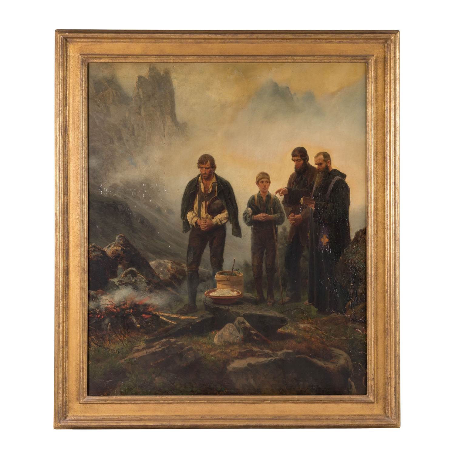 MALER/IN 19. Jh., „Priester mit Bauern und Hirte auf einem Alpenpass“,