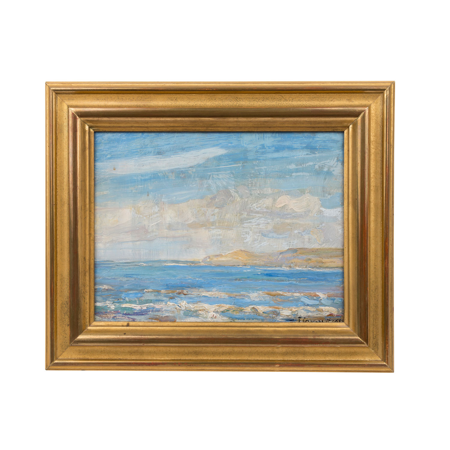 PAINTER 20th century (indistinctly signed), ""The sea in front of a steep coast"", indistinctly signed (partly hidden by the frame), oil / cardboard, HxW: 19x24 cm (26x31.5 cm with frame). Retouching. With frame. Signs of age.