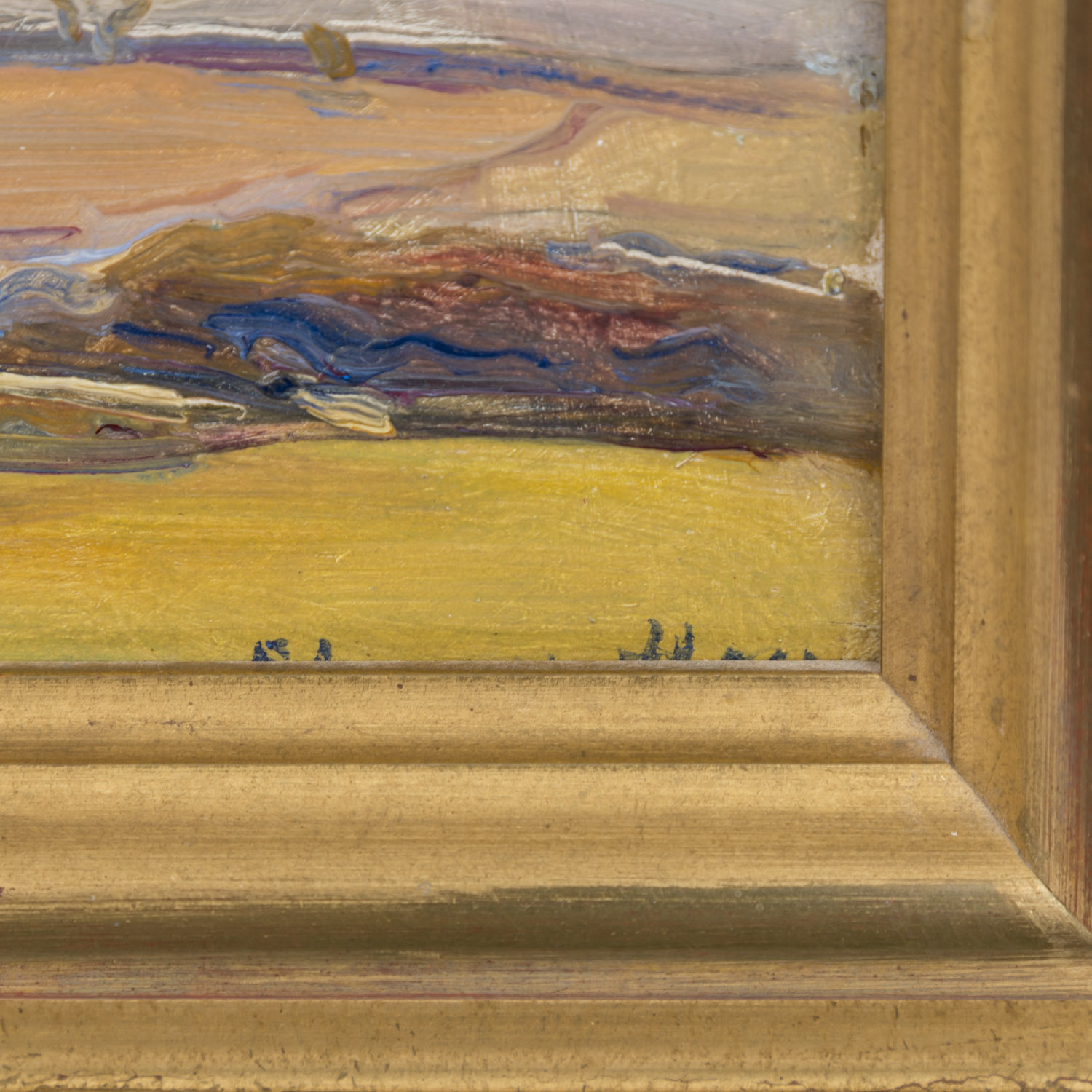 u.re. undeutlich signiert (tlw. vom Rahmen verdeckt), Öl/Karton, HxB: ca. 21x26 cm (28,5x34 cm mit Rahmen). Min. Berieb am Rand. Mit Rahmen. Altersspuren.