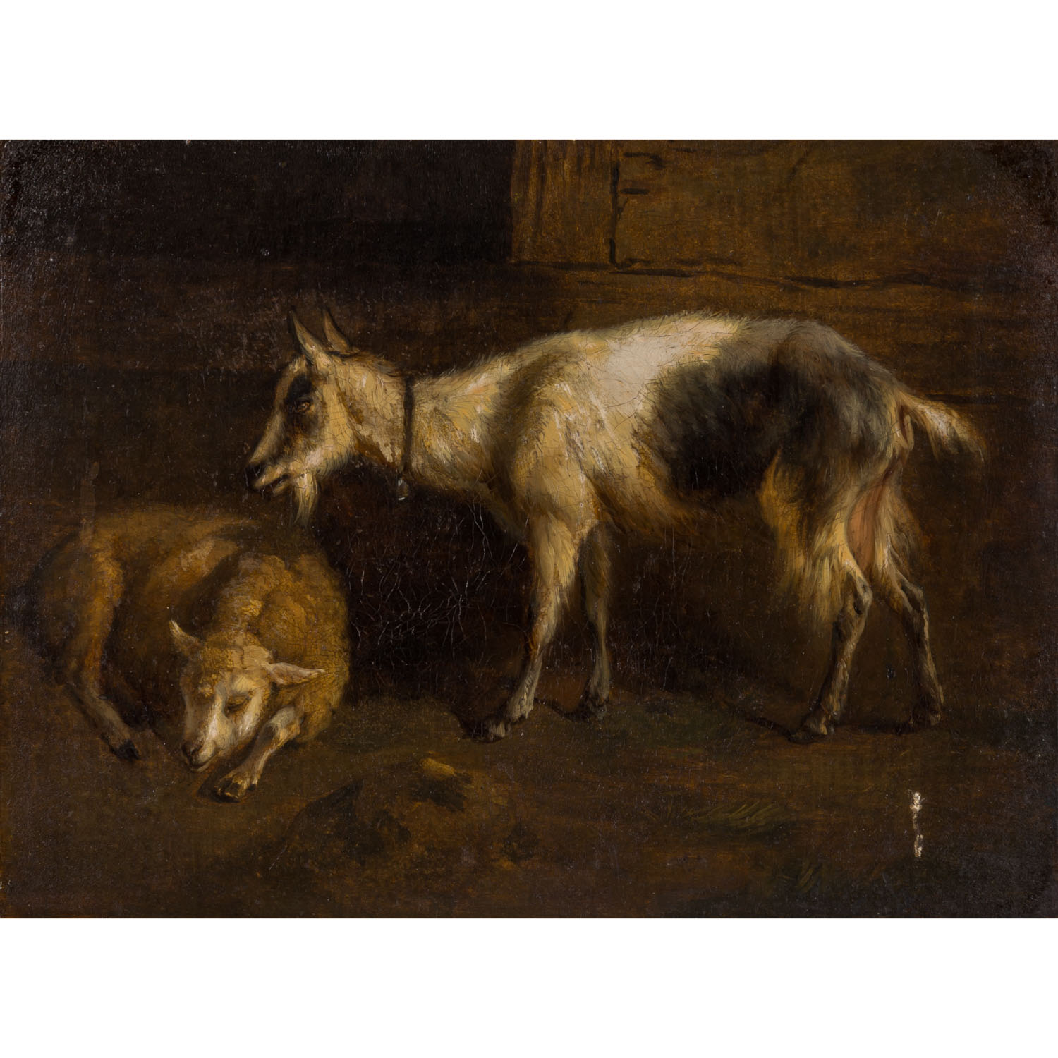 1.) ' Ziege und Schaf', Öl auf Leinwand, doubliert. HxB: ca. 25 x 32 cm (HxB Rahmen: ca. 35 x 42 cm).