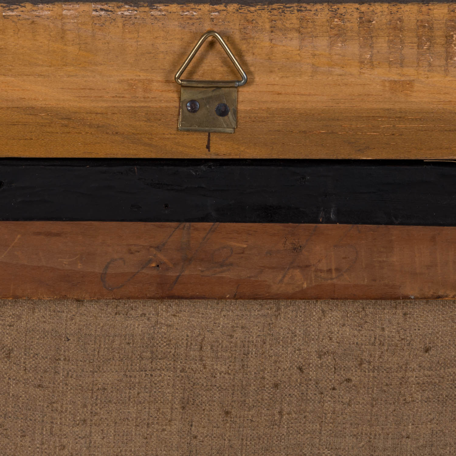 Alters- und Beriebsspuren, Craquelébildung, kleine Farbfehlstelle. Mit Rahmen (Altersspuren).