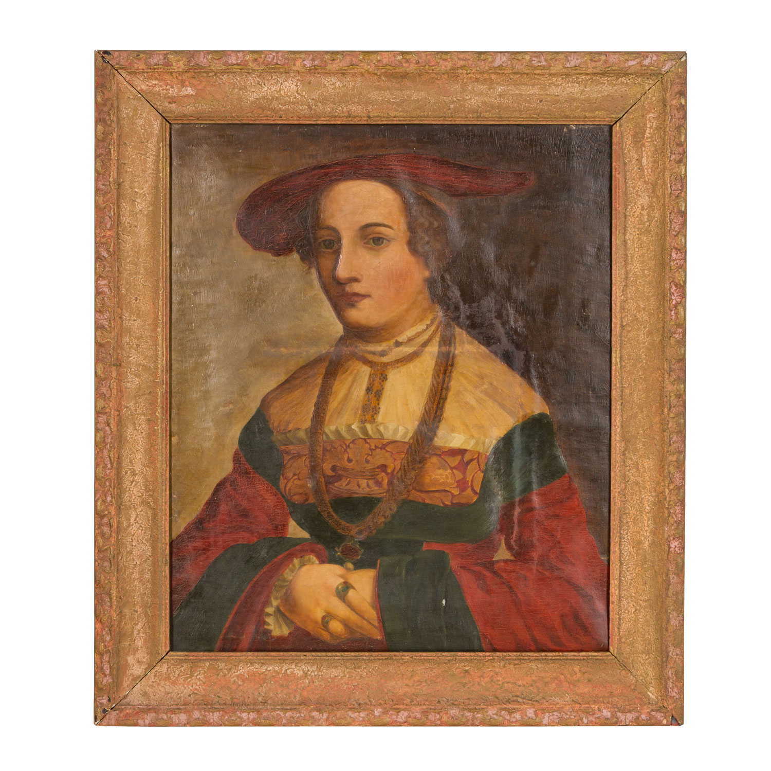 MALER/IN und Kopist/in 19. Jh., 'Dame mit rotem Hut und Renaissancegewandt',
