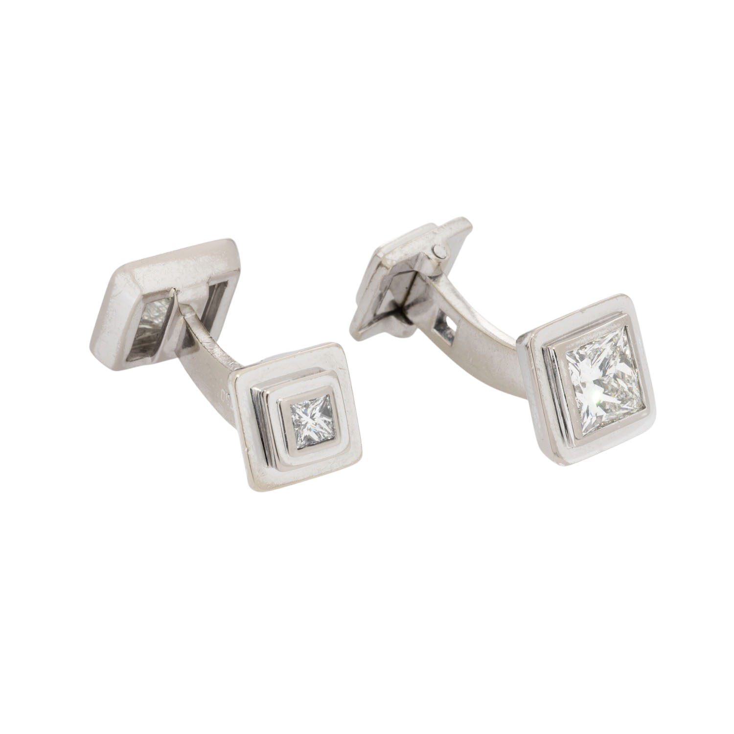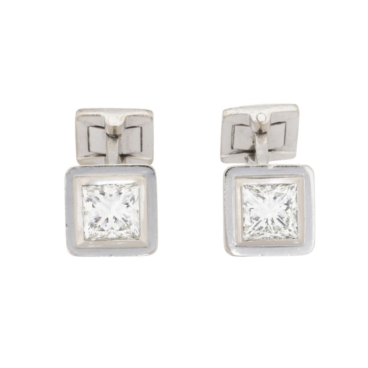 Manschettenknöpfe mit 4 Prinzess-Diamanten zus. ca. 2,3 ct,