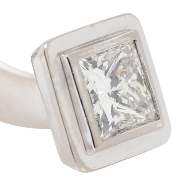 davon 2x ca. 1 ct, ca. WEISS (H)/VS2, WG 18K, 12 g, Ende 20. Jh., Tragespuren. (19e)