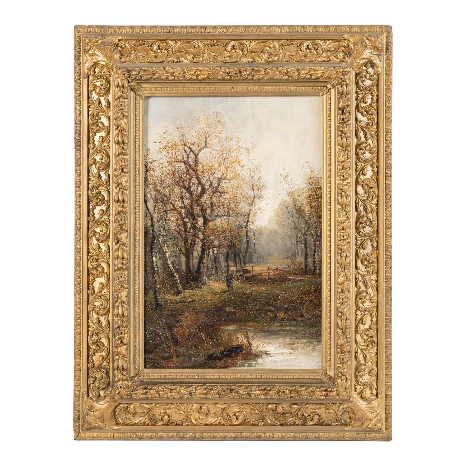 MARCHANT, R. (XIX) 'Herbstbild mit Holzsammler'
