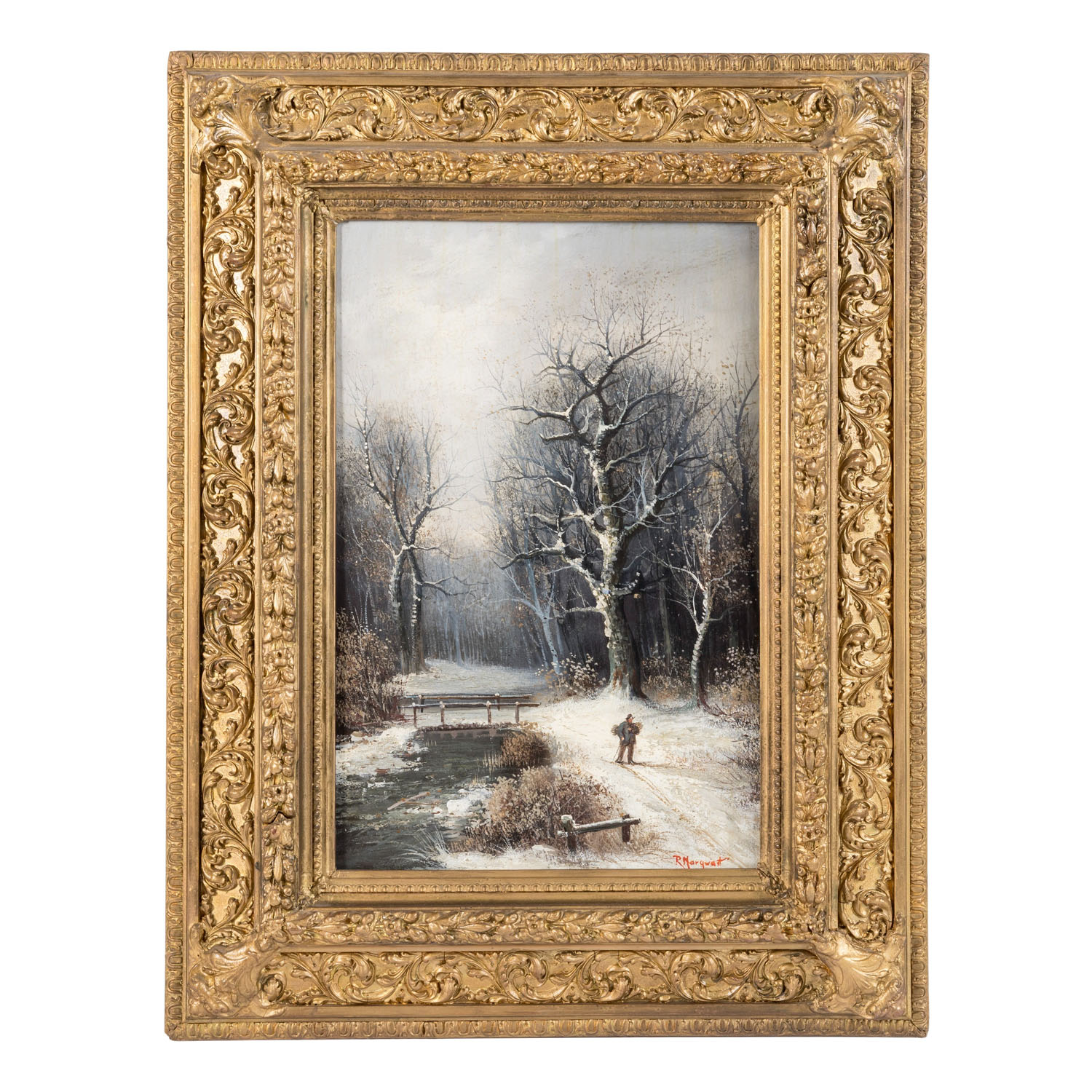 MARCHANT, R. (XIX) 'Winterbild mit Holzsammler'