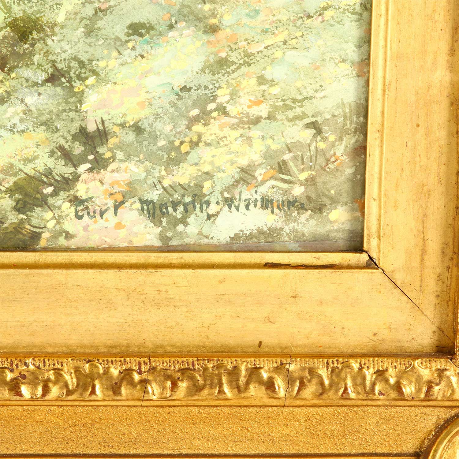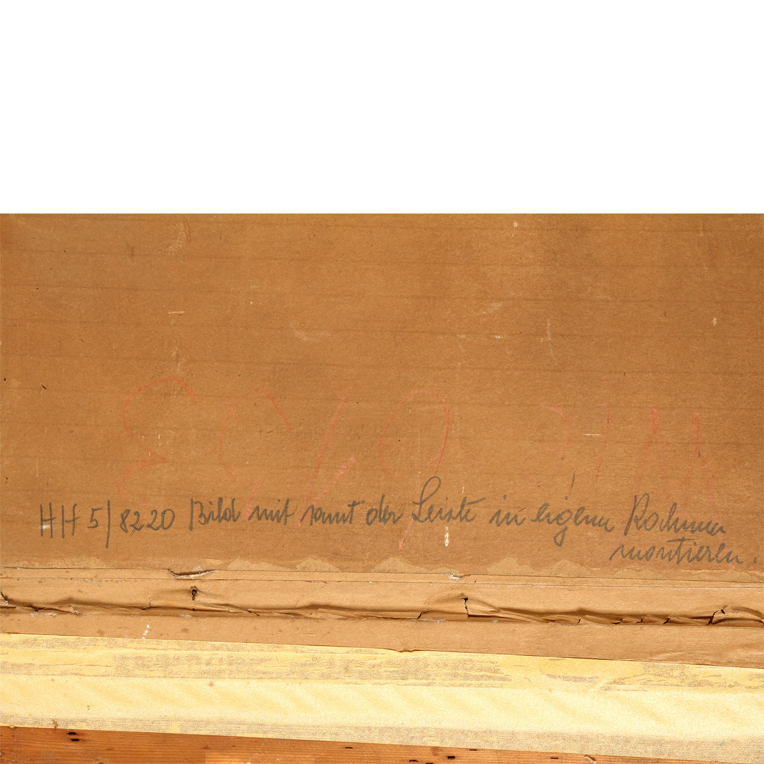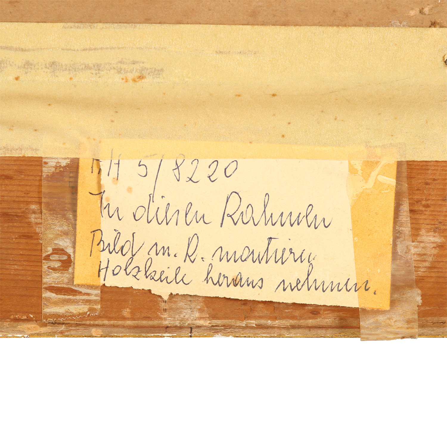 u.re. sign., Gouache/Papier auf Karton aufgez., HxB: ca. 51x68 cm (80x95 cm mit Rahmen). Mit verglastem Rahmen. Altersspuren. Verso Etikett mit Nr.: 2381.