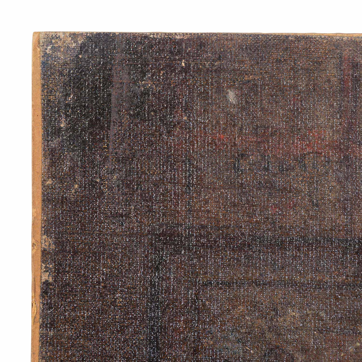 mit Büchern, Weinglas und Schatulle auf Teppich arrangiert, o.li. Restsignatur, Öl auf Leinwand auf Karton aufgezogen, ca. 49x38 cm. Farbabplatzer u. -berieb.