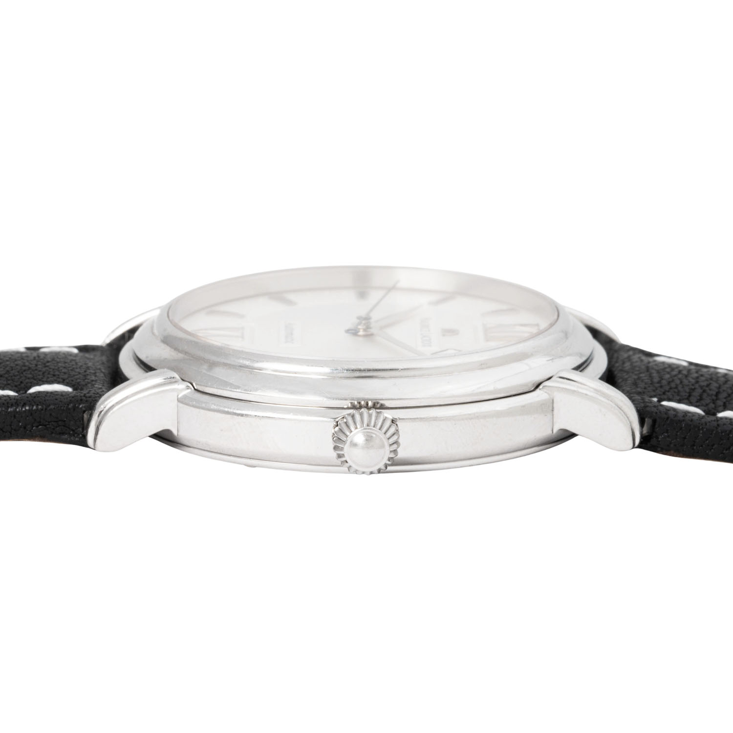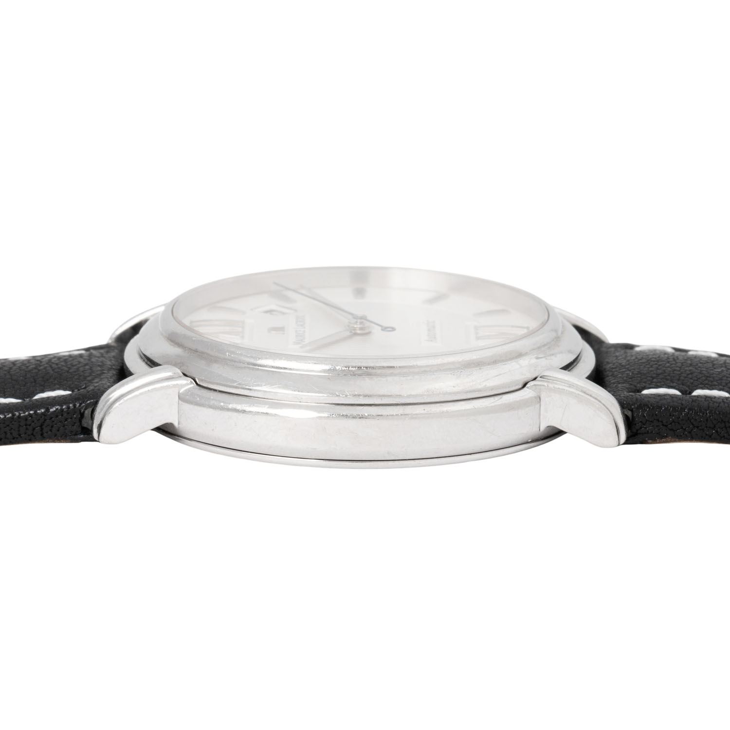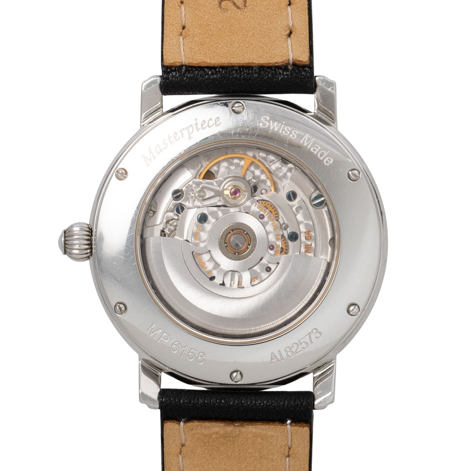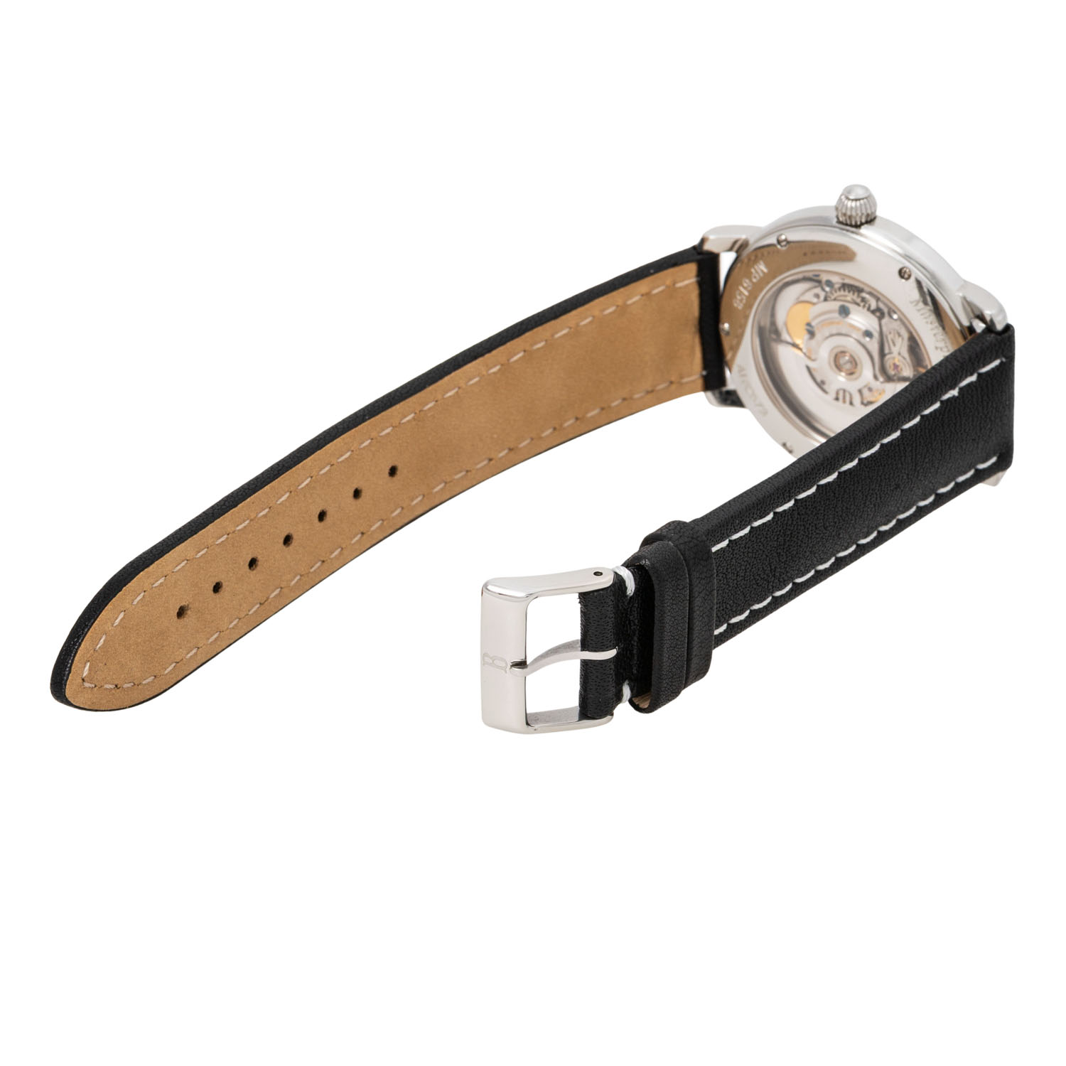 Edelstahl, Seriennummer AI82573 mit Glasboden. Automatikwerk Kal. ML54 auf Basis von ETA 2824-2 mit guten Gangwerten (+6 s/d, 242° Amplitude). Silbernes Two-Tone-Zifferblatt mit gravierten vertikal verlaufenden Linien, Stabindizes, römischer 6 und 12, Datumsanzeige und Zentralsekunde. Neues schwarzes Lederarmband mit weißen Kontrastnähten und Edelstahl-Dornschließe. Gebrauchter Zustand, sichtbare Tragespuren am Gehäuse. Original Box und Papiere von 12/2006, gekauft bei Juwelier Rosche in Duisburg, Gebrauchsanweisung und Serviceverzeichnis anbei. Durchmesser ca. 40 mm gemessen ohne Krone.