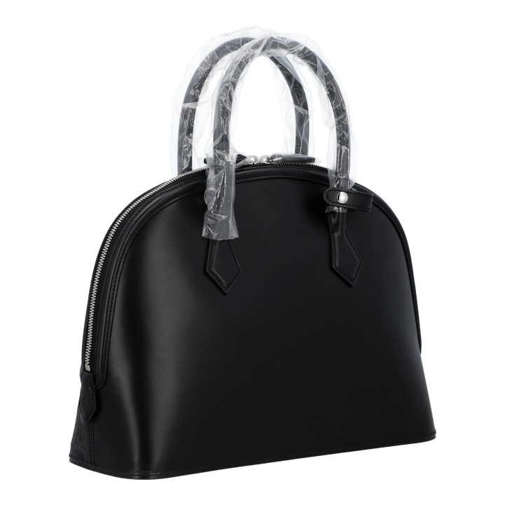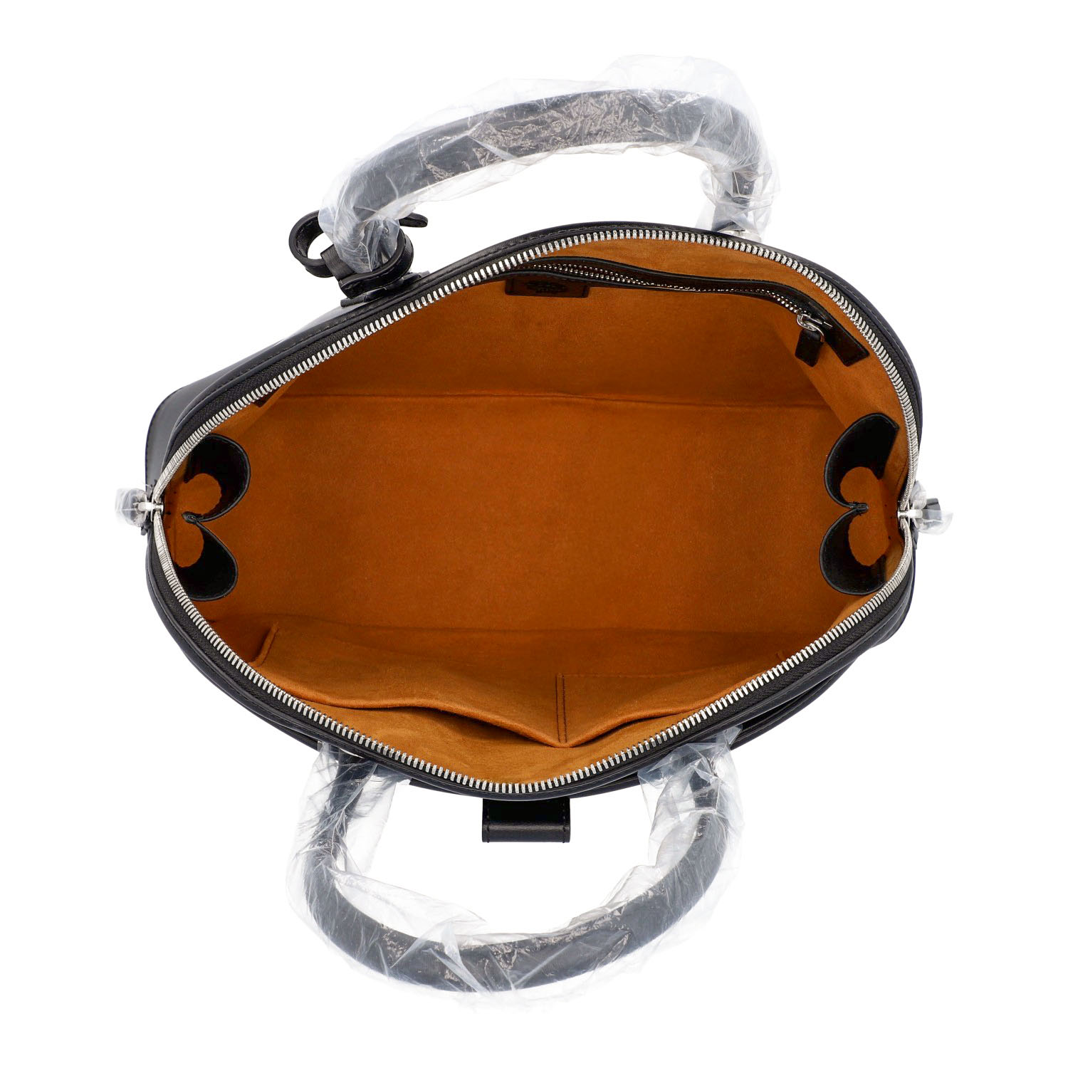 Visetos-Serie aus beschichtetem Canvas mit schwarzem Leder und silberfarbener Hardware, Doppelhenkel, Reißverschluss, Außenfach und Schulterriemen. Innenraum mit drei Fächern, davon eines mit Reißverschluss. Staubbeutel vorhanden. Neuwertiger Zustand.