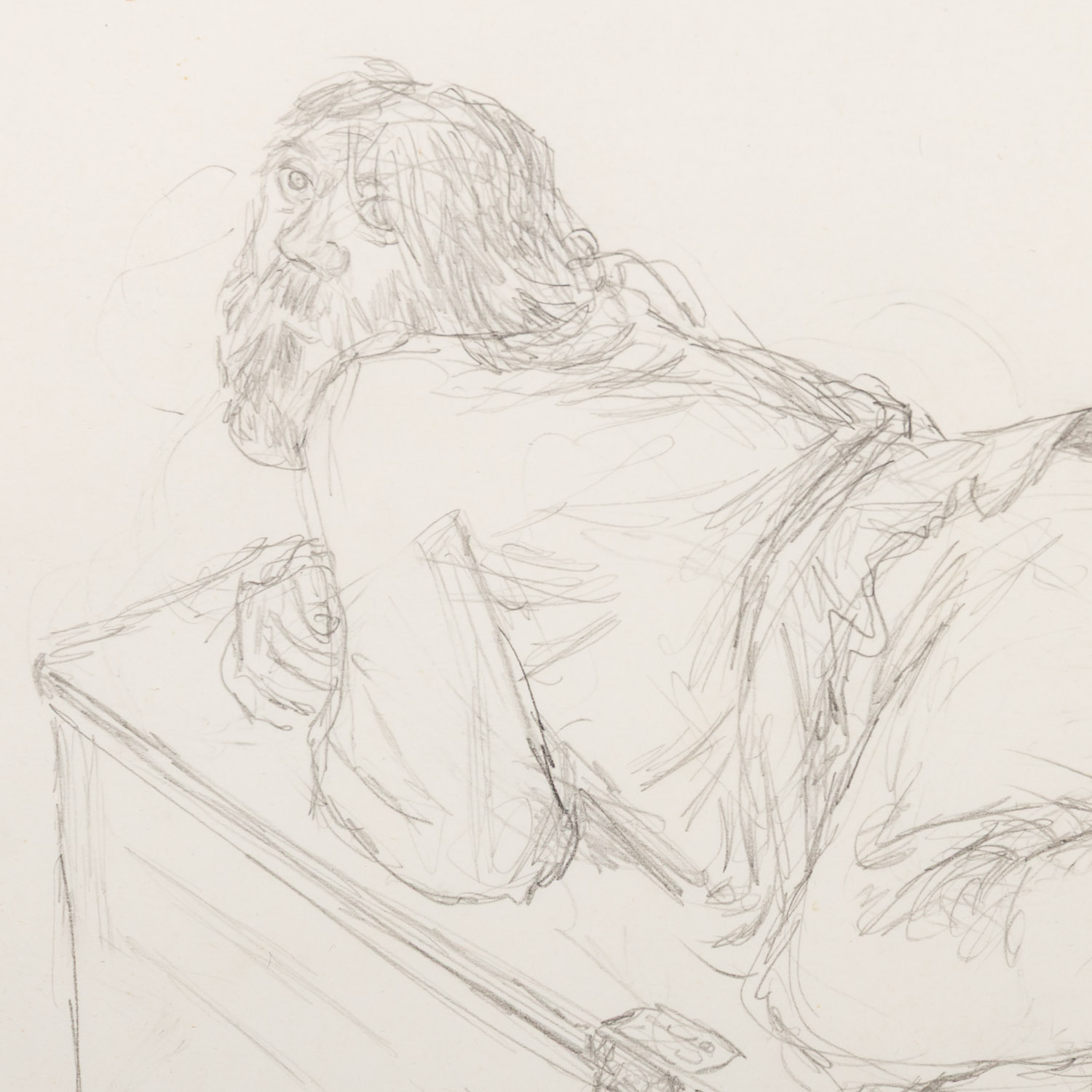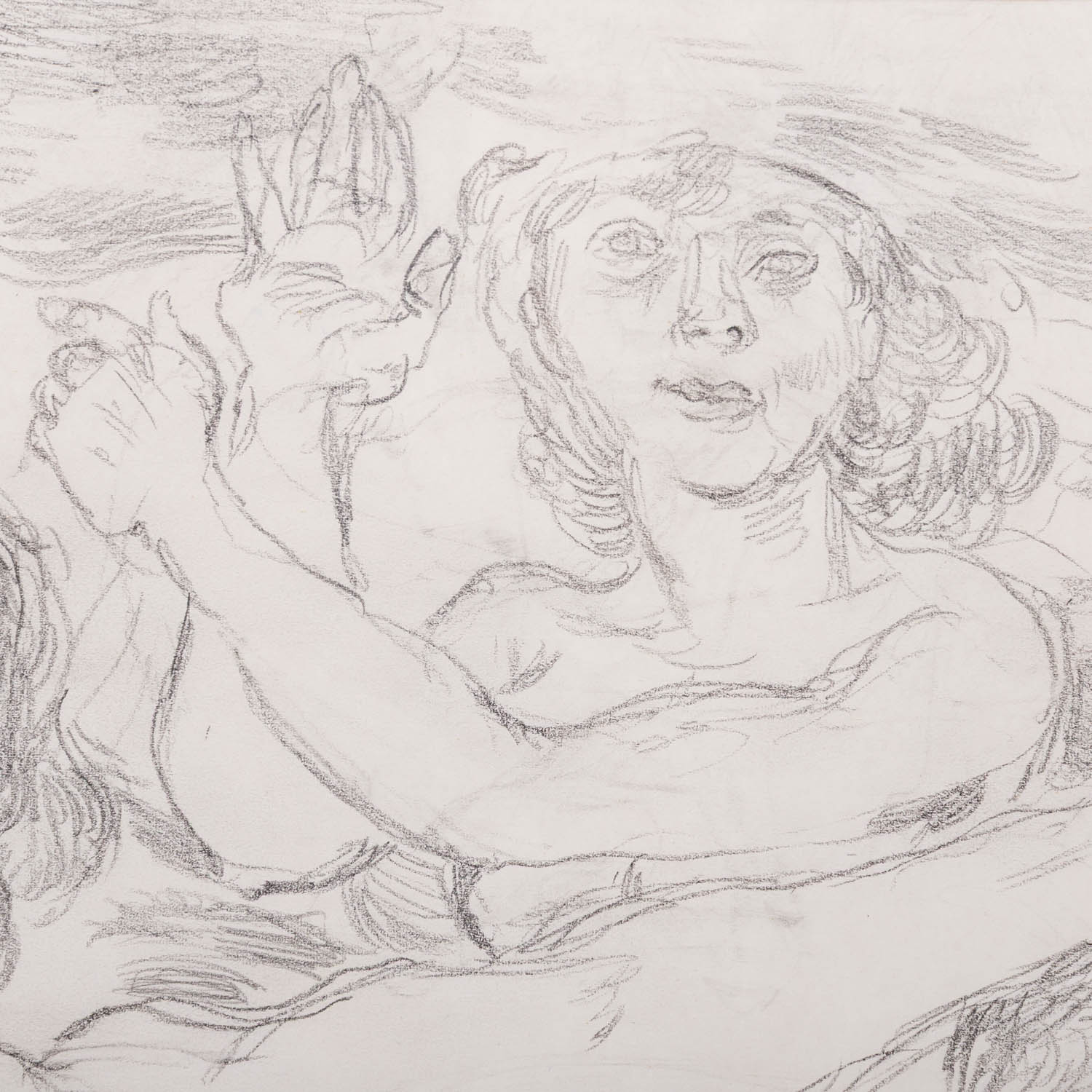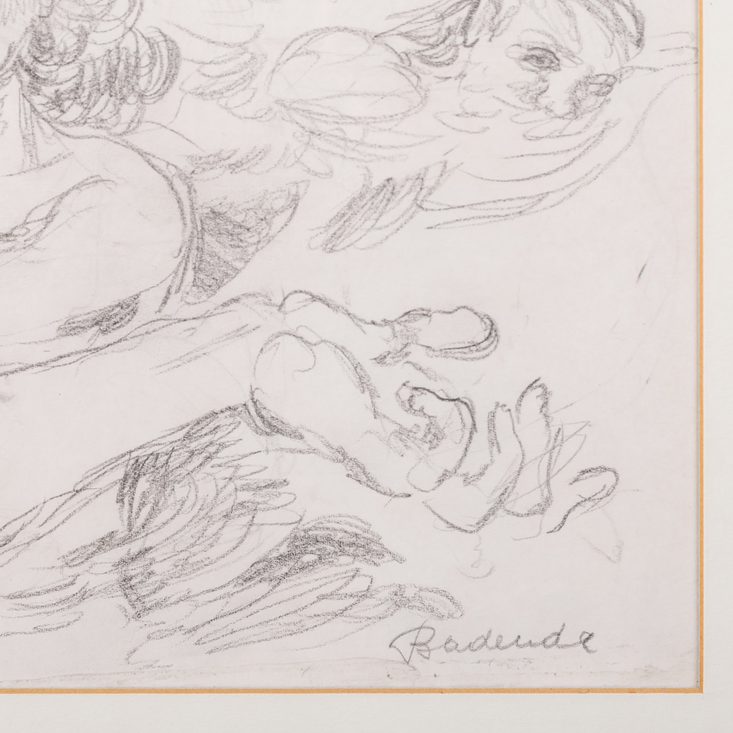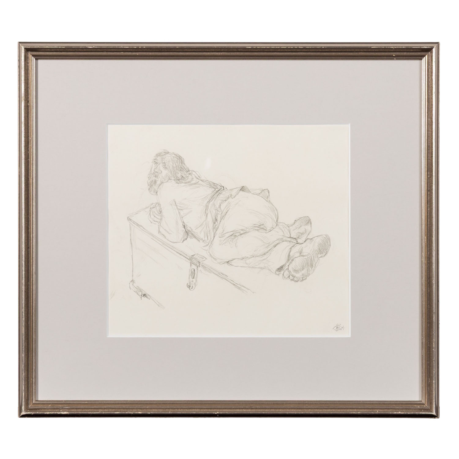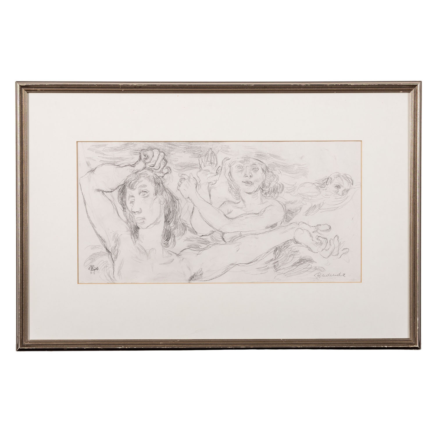'Badende', 'Ballade auf den Krieg' und 'nach Gorki', je Signé 'Fisch' mit Datierung, je Bleistift/Papier, HxB: Passepartoutausschnitt ca. 18,5x21 cm bis 19x38 cm (bis 36x54 cm mit Rahmen). Altersspuren, leicht gebräunt. Je im Passepartout hinter Glas gerahmt. Je VERSO Etikett Kunsthaus & Galerie Keim, Stuttgart-Bad Cannstatt mit Bezeichnung.