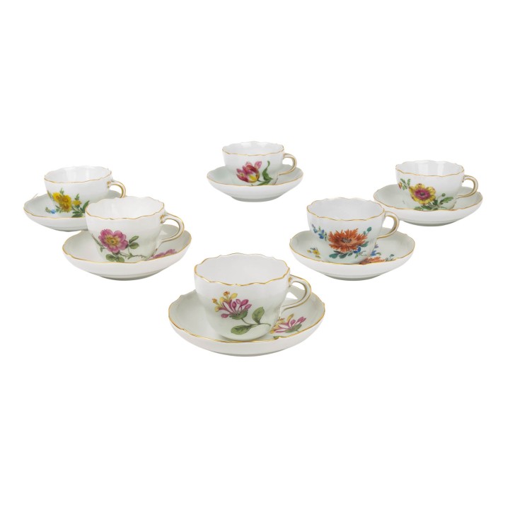 MEISSEN Prunkvolles Mokkaservice f. 6 Personen 'B-Form', 20. Jh.