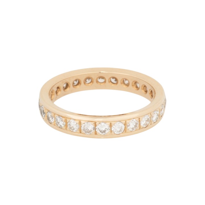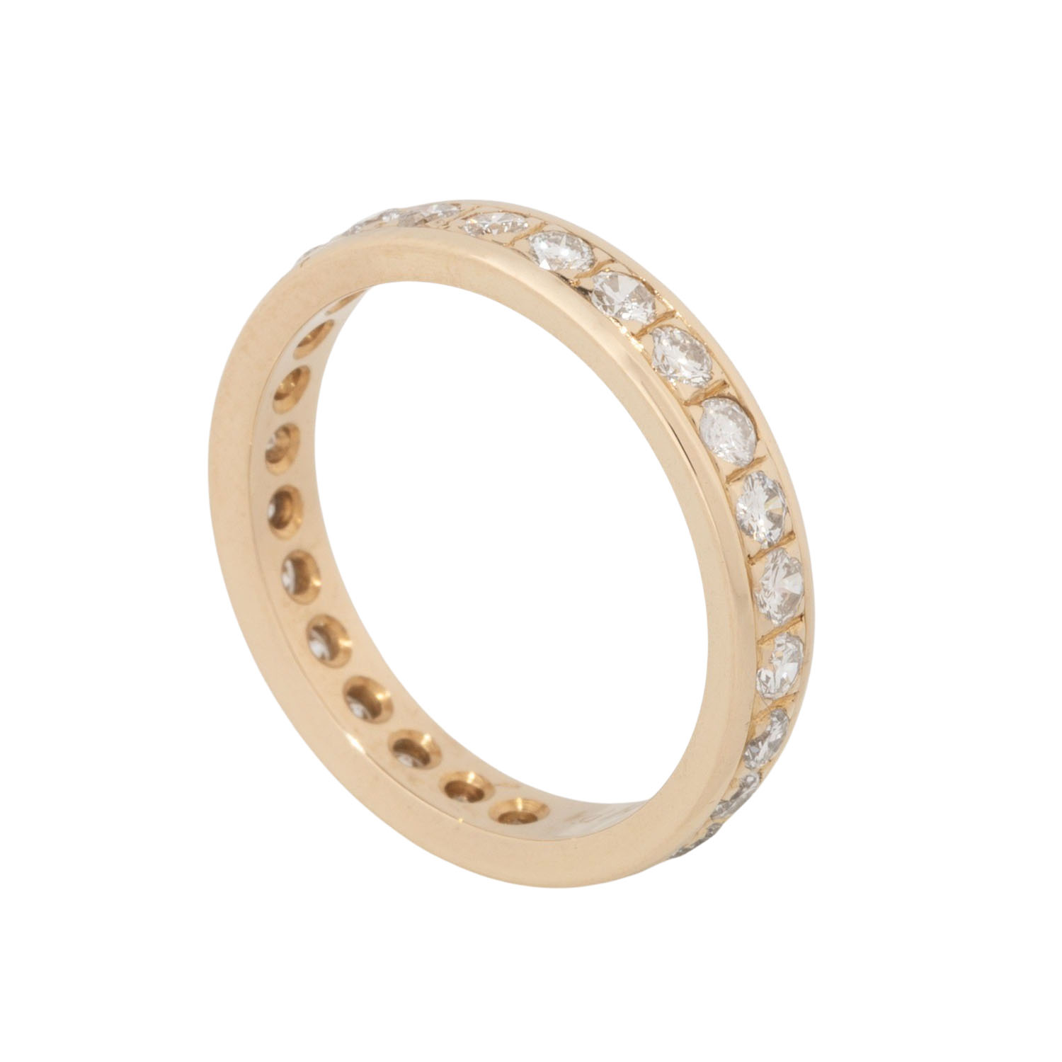 zus. ca. 0,90 ct, ca. WEISS (H)/P, GG 18K, 3,4 g, RW: 51,5, 21. Jh., leichte Tragespuren.