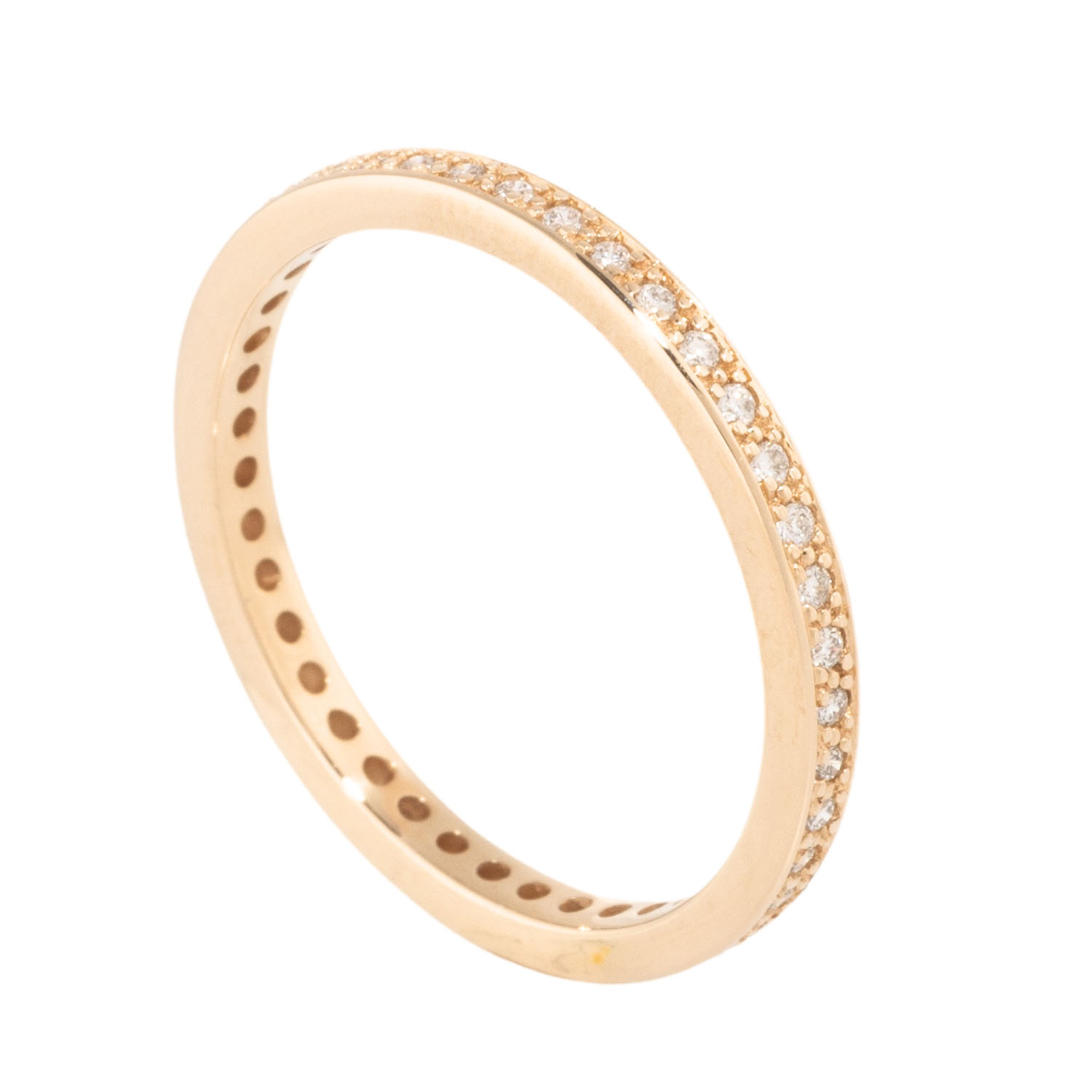 zus. ca. 0,20 ct, WEISS (H)/SI-P, GG 14K, 1,9 g, RW: 54, B: ca. 2 mm, 21. Jh., minimale Tragespuren.