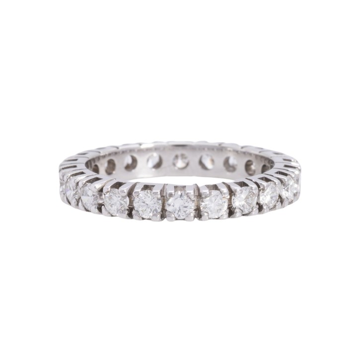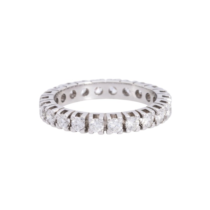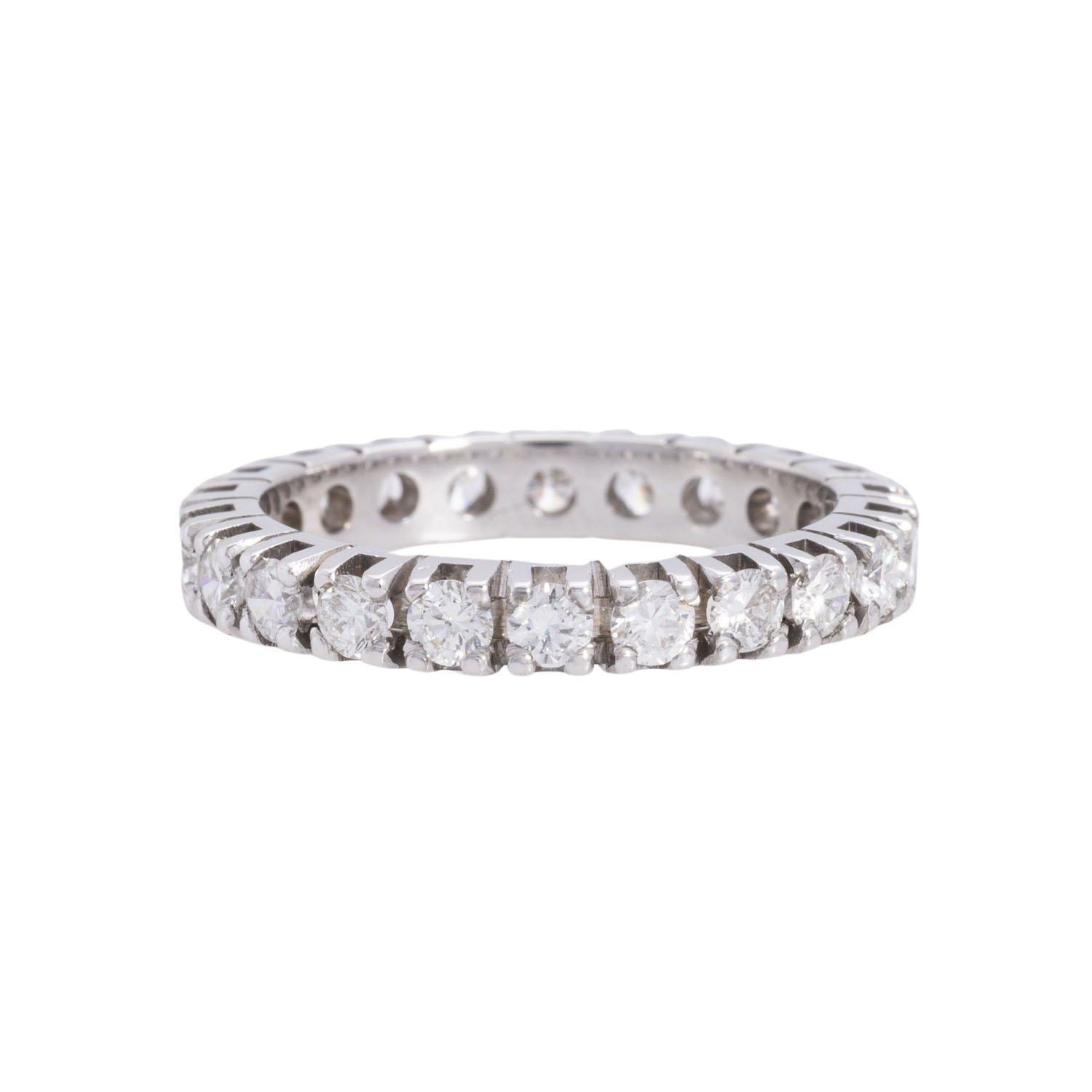 von zus. ca. 1 ct, gute Farbe und Reinheit, WG 18K, 3,2 g, RW: 52, 2. Hälfte 20. Jh., leichte Tragespuren.