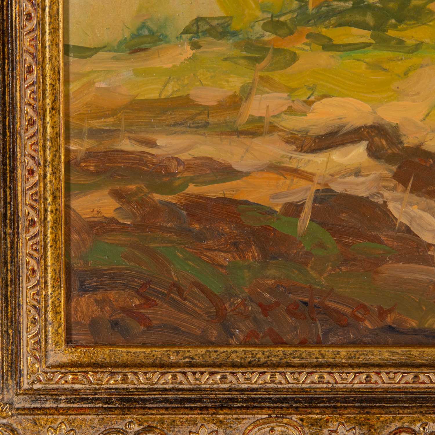 u.li. signiert und bezeichnet 'Mch.', Öl über Zeichnung (wohl Kohle)/Hartfaser, HxB: ca. 40x50 cm (51x61 cm mit Rahmen). Altersspuren, leichter Firnisgilb. Mit Rahmen.